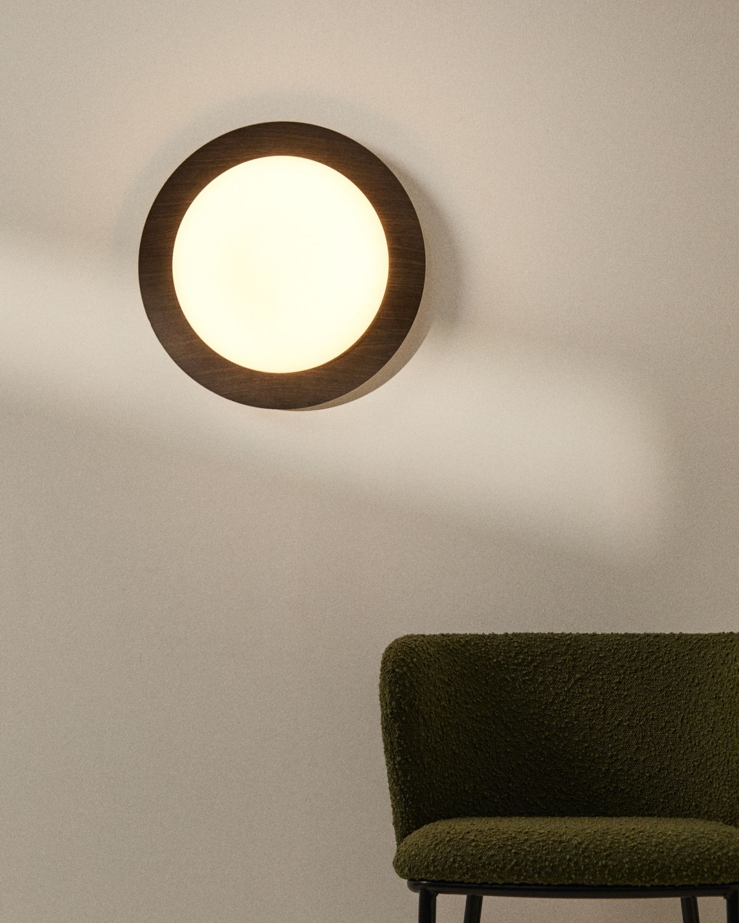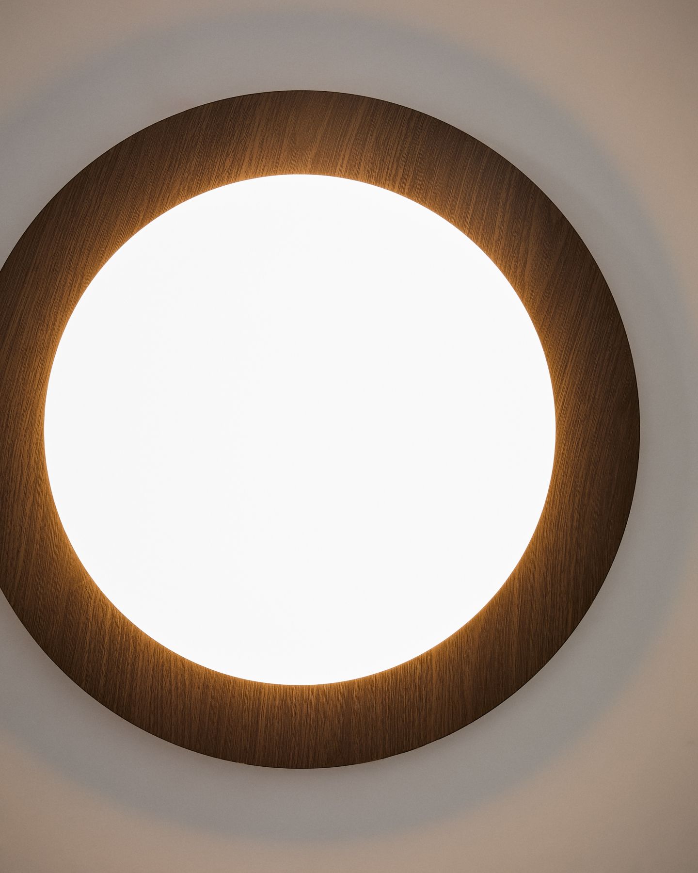Потолочный светильник Novae для ванной комнаты сочетает в себе чистоту матового стекла и строгость стального основания с имитацией дерева, добавляя сдержанный и элегантный вид любому помещению. Стекло создает уютную и однородную атмосферу в ванной комнате. Сертификация IP44 гарантирует защиту от влаги и брызг, что делает светильник подходящим для влажных помещений и безопасным для ежедневного использования. Он оснащен светодиодной технологией мощностью 10 Вт с нейтральной цветовой температурой 3000 К, которая обеспечивает сбалансированное освещение, идеально подходящее для повседневного использования.