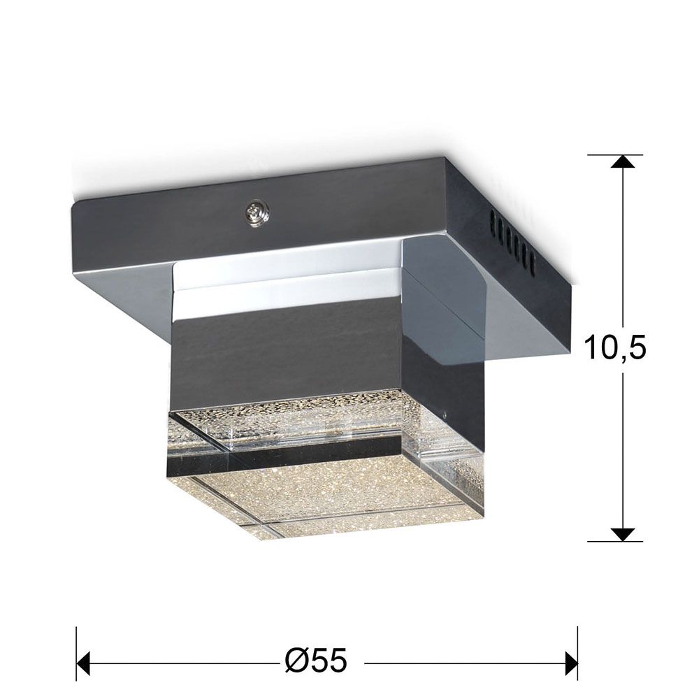 Потолочный светодиодный светильник из металла с покрытием "хром". Плафон из прозрачного акрила с фактурной поверхностью. 4W LED, 336 Lm, 3000 K.