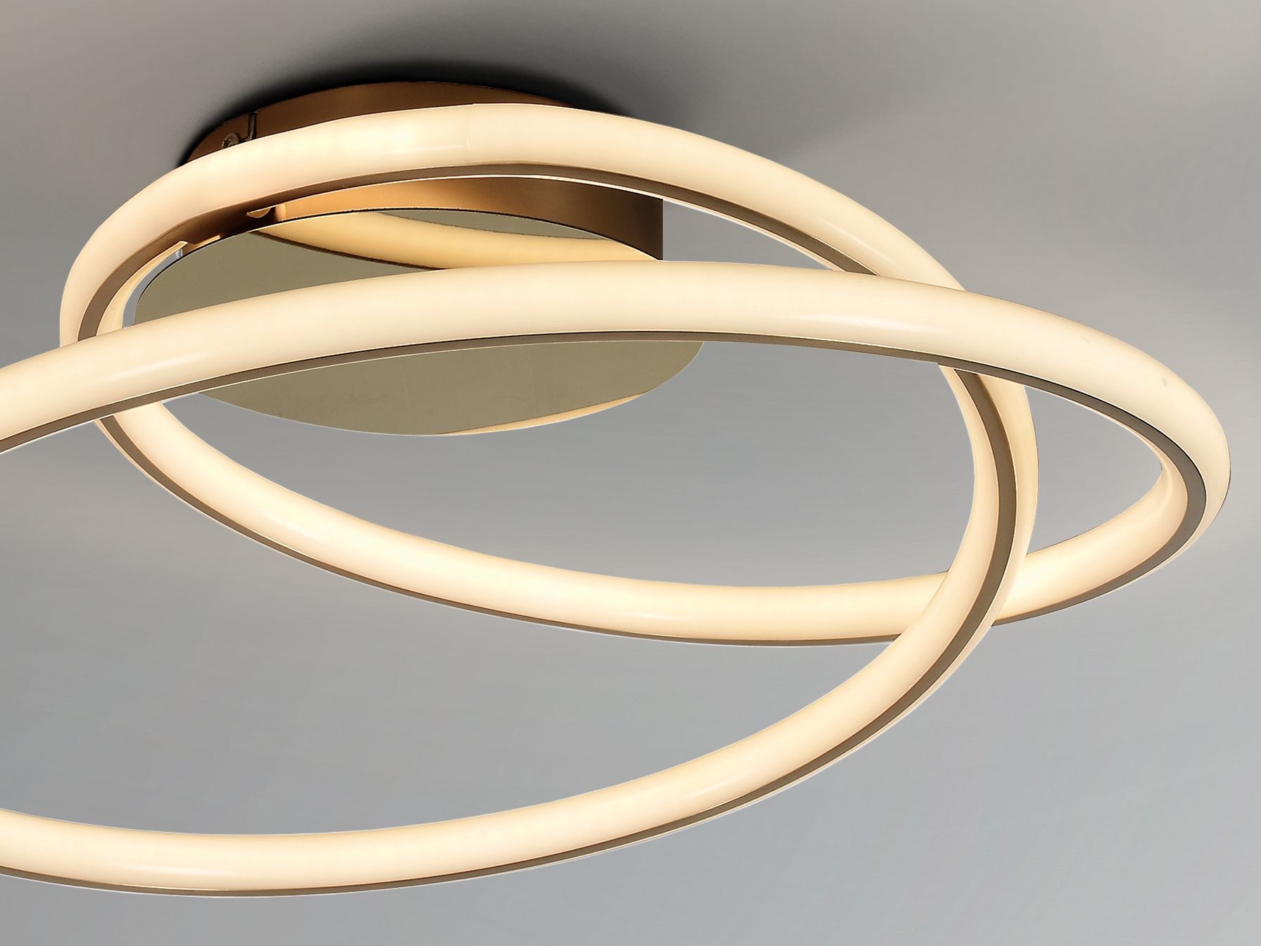 Потолочный светильник из металла и алюминия, покрытие "блестящее золото" и "матовое золото". Рассеиватель трубчатый из силикона опалового цвета. 44W LED, 3520 Lm, 3000K.