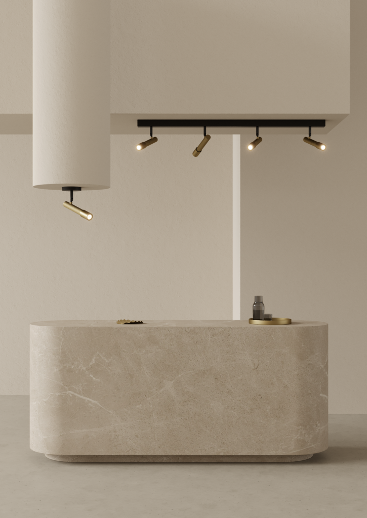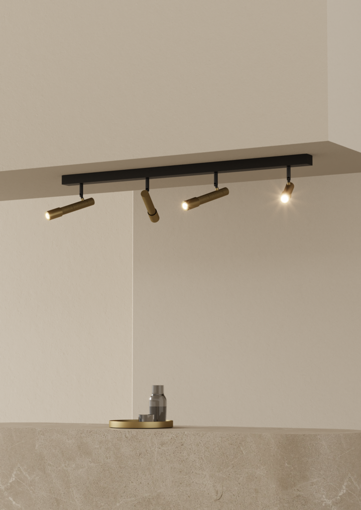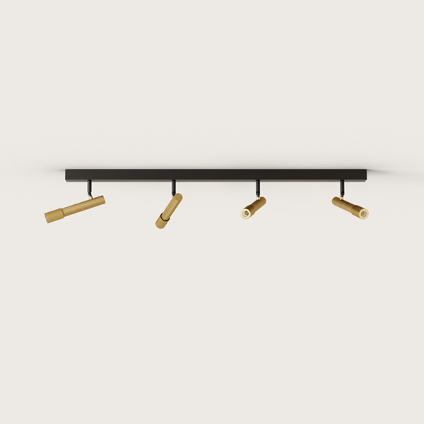 Потолочный светильник, выполненный из металла в матовой латунно- черной отделке.