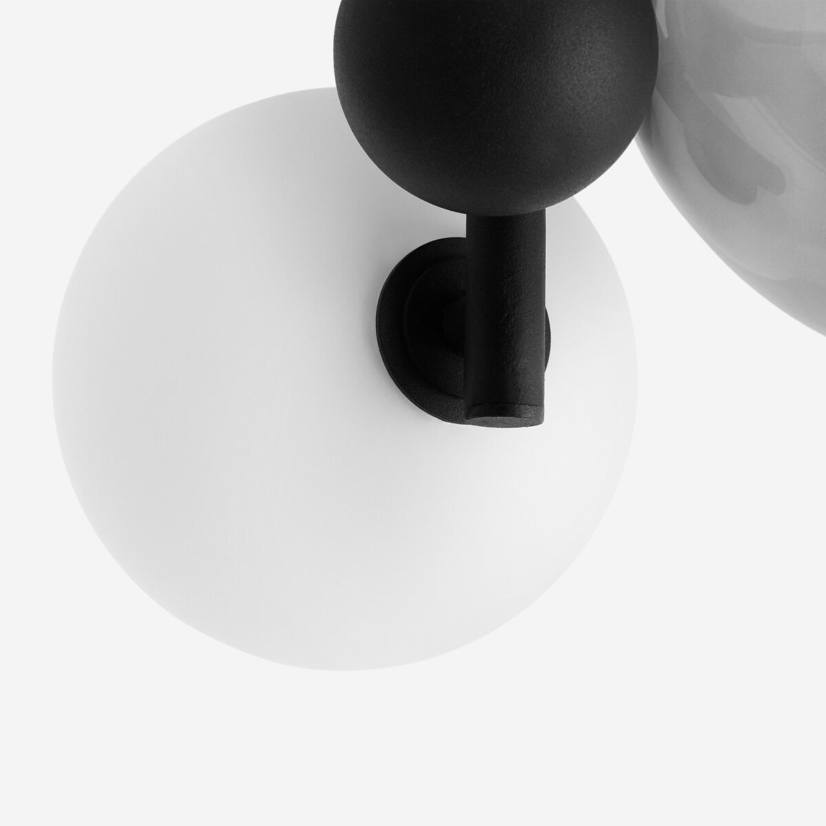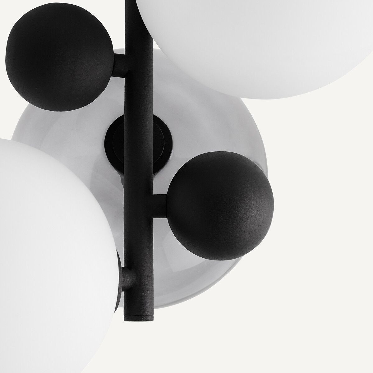 — Стекло и металл с эпоксидным покрытием серого металлика + 1 шар из дутого стекла с тонировкой Ø18 см