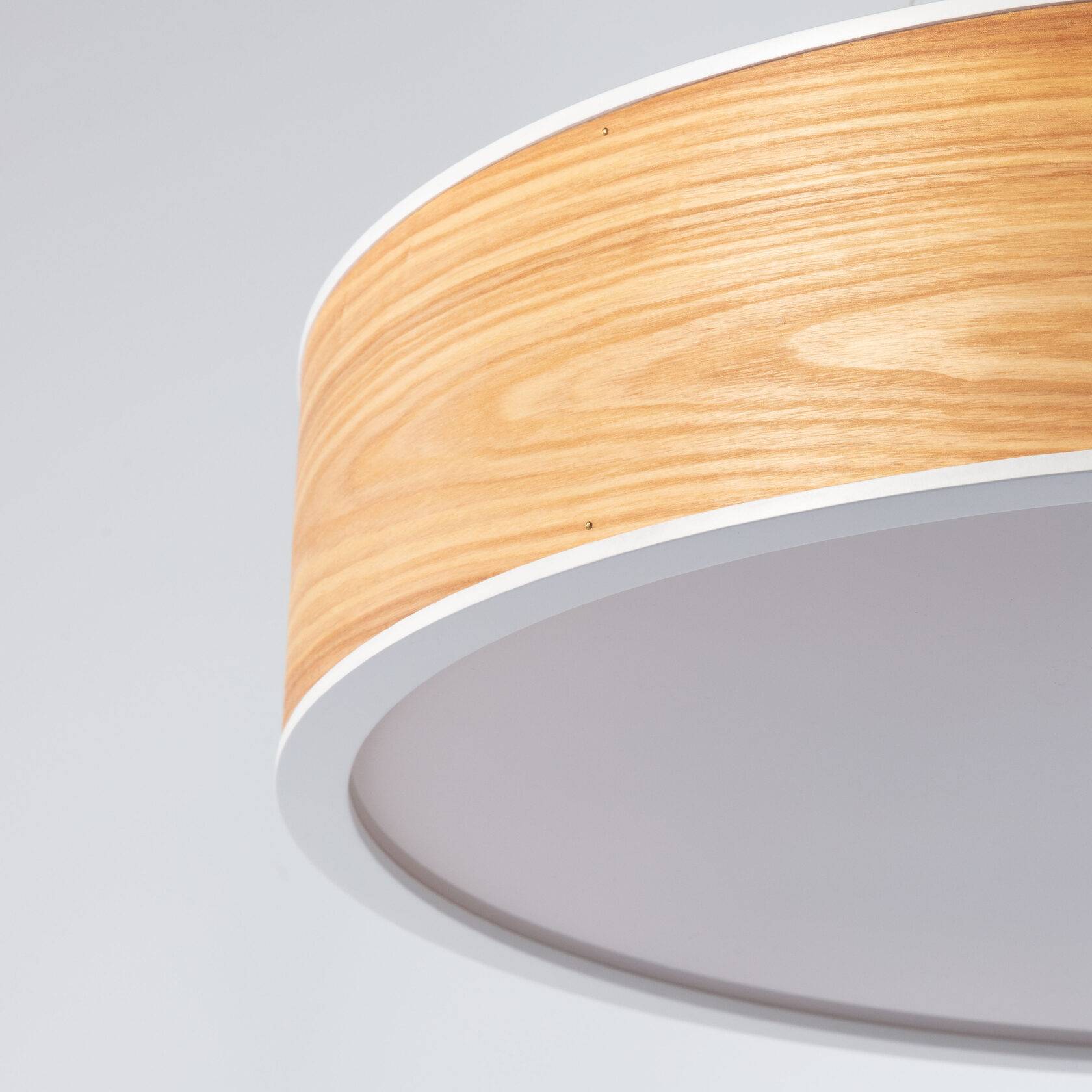Природные текстуры и формы завораживают своей красотой. Светильник сделан из натурального дерева и окантовки цветным «кантом». При включённом питании тонкий шпон оливкового ясеня или американского ореха красиво просвечивается изнутри.