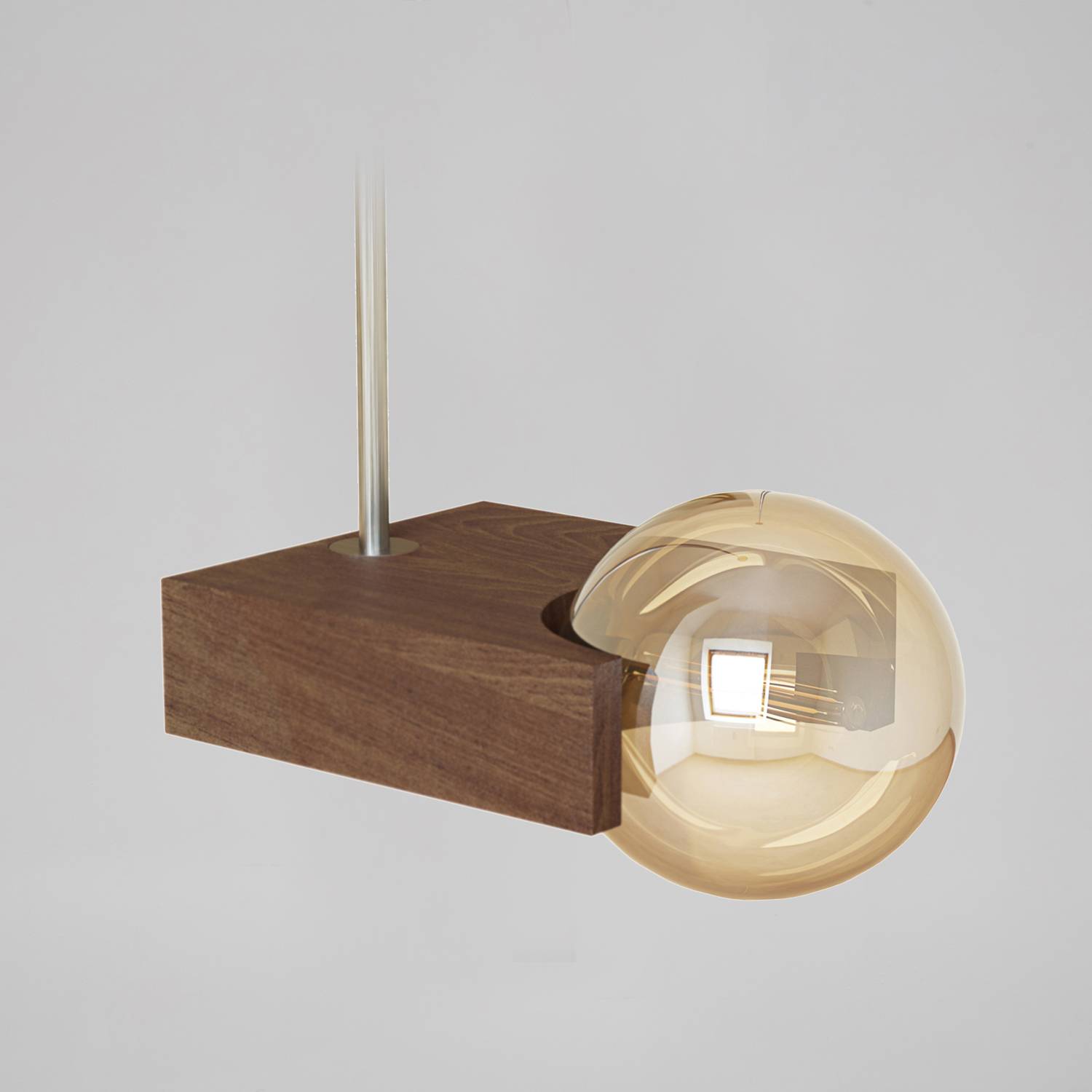 Omega для тех, кто хочет современный светильник с четкими линиями. Он состоит из деревянного плафона, подвеса из металлических трубок и светодиодной лампочки.