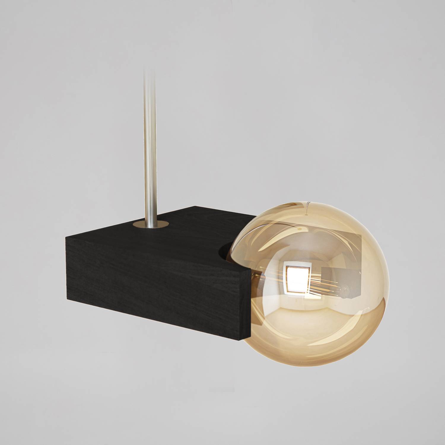 Omega для тех, кто хочет современный светильник с четкими линиями. Он состоит из деревянного плафона, подвеса из металлических трубок и светодиодной лампочки.