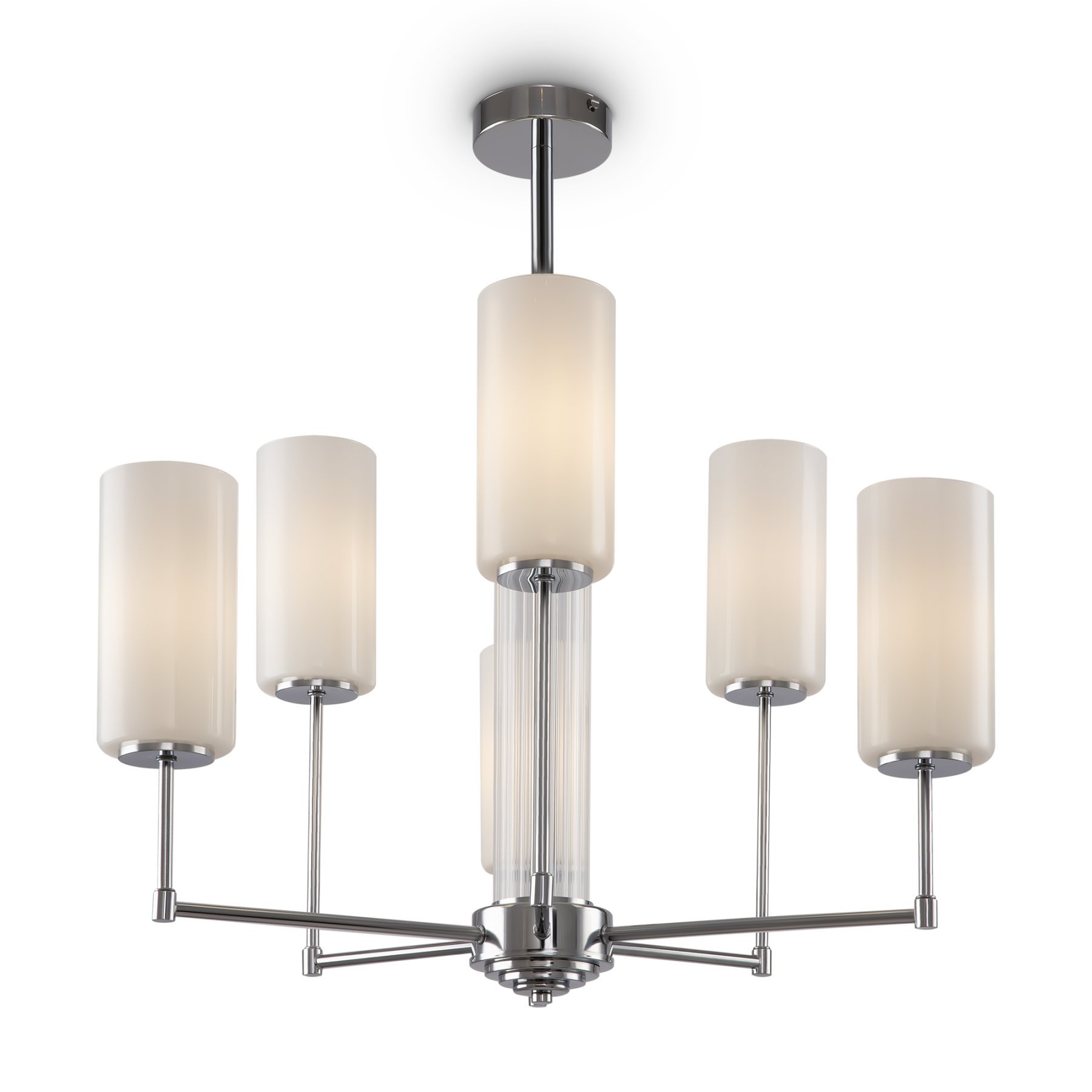 Выразительную силу простых художественных решений демонстрирует серия Agnes: дизайнеры отказались от стандартного одноуровневого расположения плафонов, разместив их на разной высоте. Всего одна деталь меняет настроение модели, а элегантная классика обретает современные черты. Арматура светильника выполнена из металла и окрашена в цвет латуни и хрома. Лаконичный силуэт дополняется стеклянным декором центрального стержня: рельефная фактура оттеняет гладкую поверхность рожков. Белые плафоны из полупрозрачного стекла мягко приглушают световой поток, делая его уютным и обволакивающим. Оригинальное дизайнерское решение позволяет использовать модель как в классических, так и в современных интерьерах с настроением ар-деко, строгой неоклассики или бунтарской эклектики. Люстры на 6 и 8 плафонов и бра – готовый ансамбль для комплексного освещения пространства в единой стилистике.
