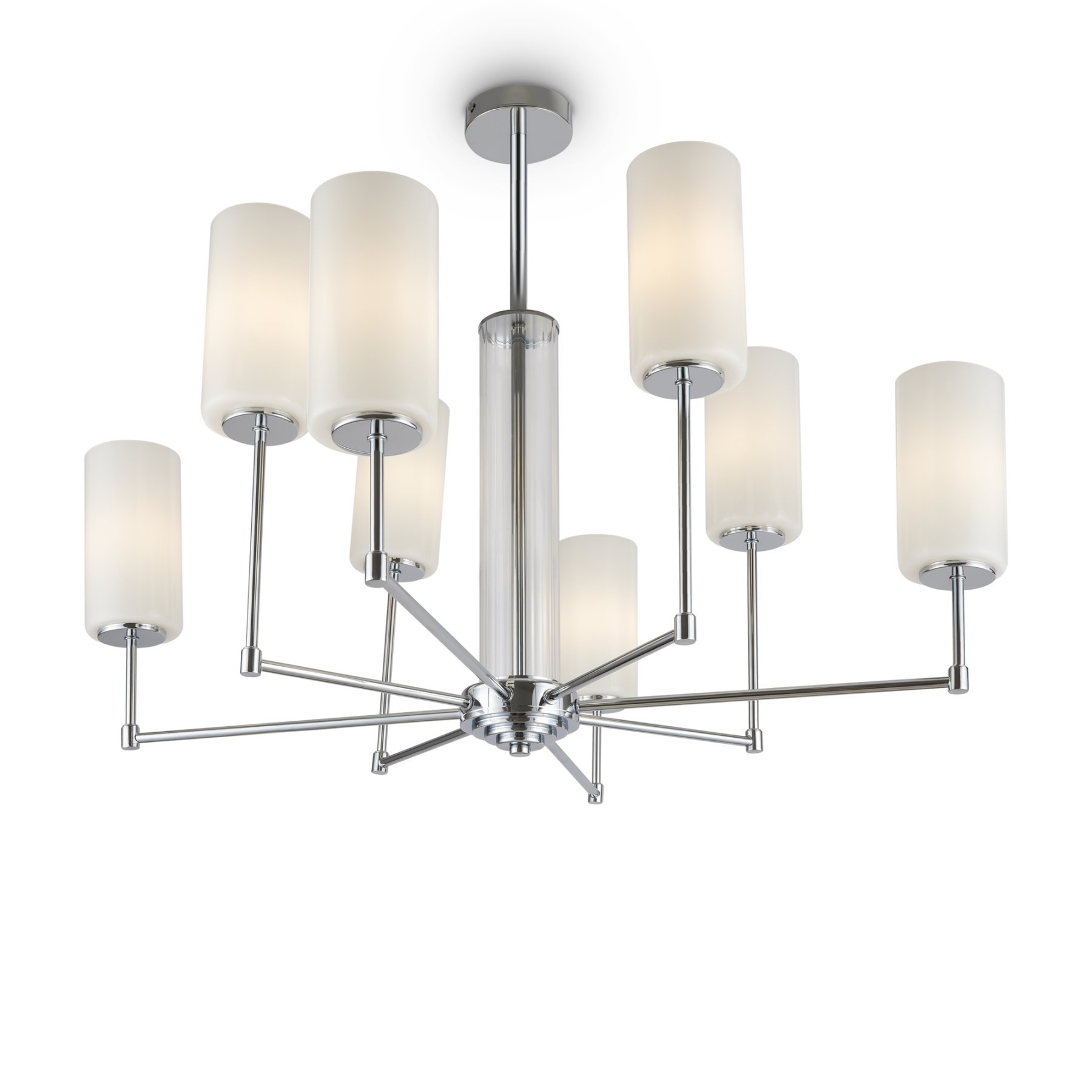 Выразительную силу простых художественных решений демонстрирует серия Agnes: дизайнеры отказались от стандартного одноуровневого расположения плафонов, разместив их на разной высоте. Всего одна деталь меняет настроение модели, а элегантная классика обретает современные черты. Арматура светильника выполнена из металла и окрашена в цвет латуни и хрома. Лаконичный силуэт дополняется стеклянным декором центрального стержня: рельефная фактура оттеняет гладкую поверхность рожков. Белые плафоны из полупрозрачного стекла мягко приглушают световой поток, делая его уютным и обволакивающим. Оригинальное дизайнерское решение позволяет использовать модель как в классических, так и в современных интерьерах с настроением ар-деко, строгой неоклассики или бунтарской эклектики. Люстры на 6 и 8 плафонов и бра – готовый ансамбль для комплексного освещения пространства в единой стилистике.