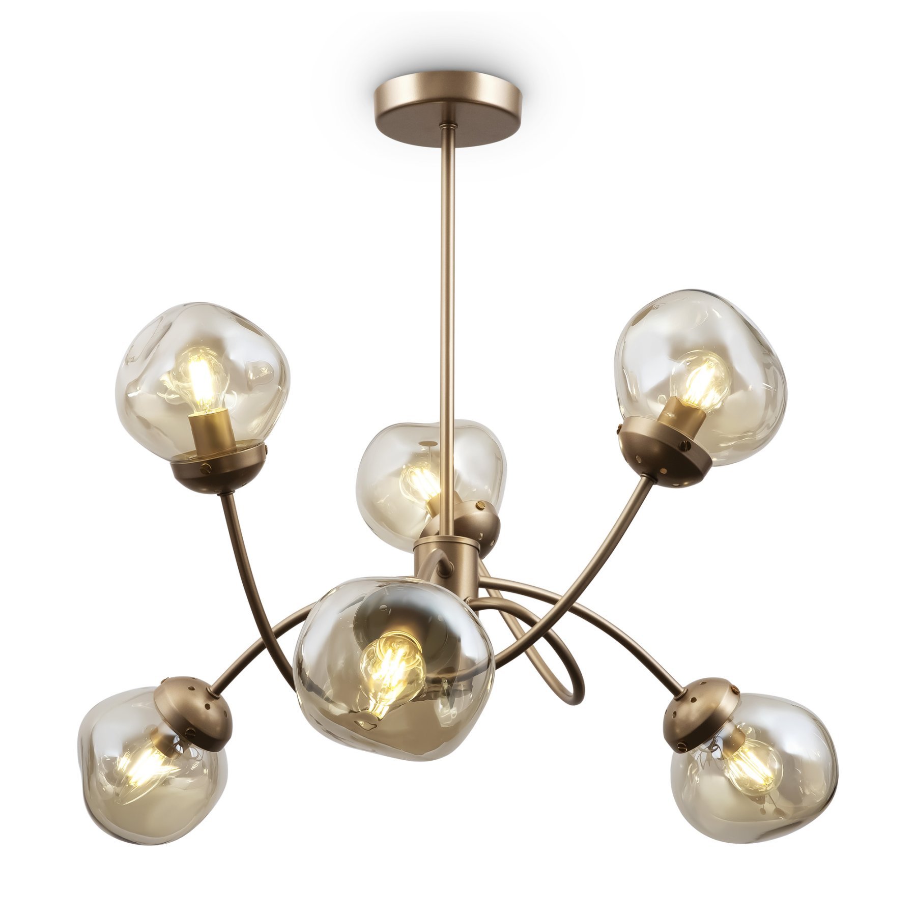 Динамика, скорость и ритм шумного мегаполиса отражены в сложных формах светильников Volani. Такой эффект достигается за счет конструктивных особенностей: рожки изогнуты под необычным углом, переплетаются друг с другом. Дизайнерское решение выгодно и с практической точки зрения: разнонаправленный световой поток обеспечивает равномерное и яркое освещение. Арматура из металла цвета матового золота идеально гармонирует с янтарными стеклянными плафонами. Теплая цветовая гамма добавит интерьеру уюта. Оригинальная форма плафонов поддерживает идею динамичного, движущегося дизайна. Наличие в серии люстр на 6, 8 и 10 ламп позволяет выбрать оптимальную мощность и интенсивность подсветки, исходя из размеров помещения. Завершить и дополнить световую инсталляцию поможет бра. Для интерьеров в стиле лофт, хай-тек, минимализм, mid-century modern серия Volani станет идеальным решением.