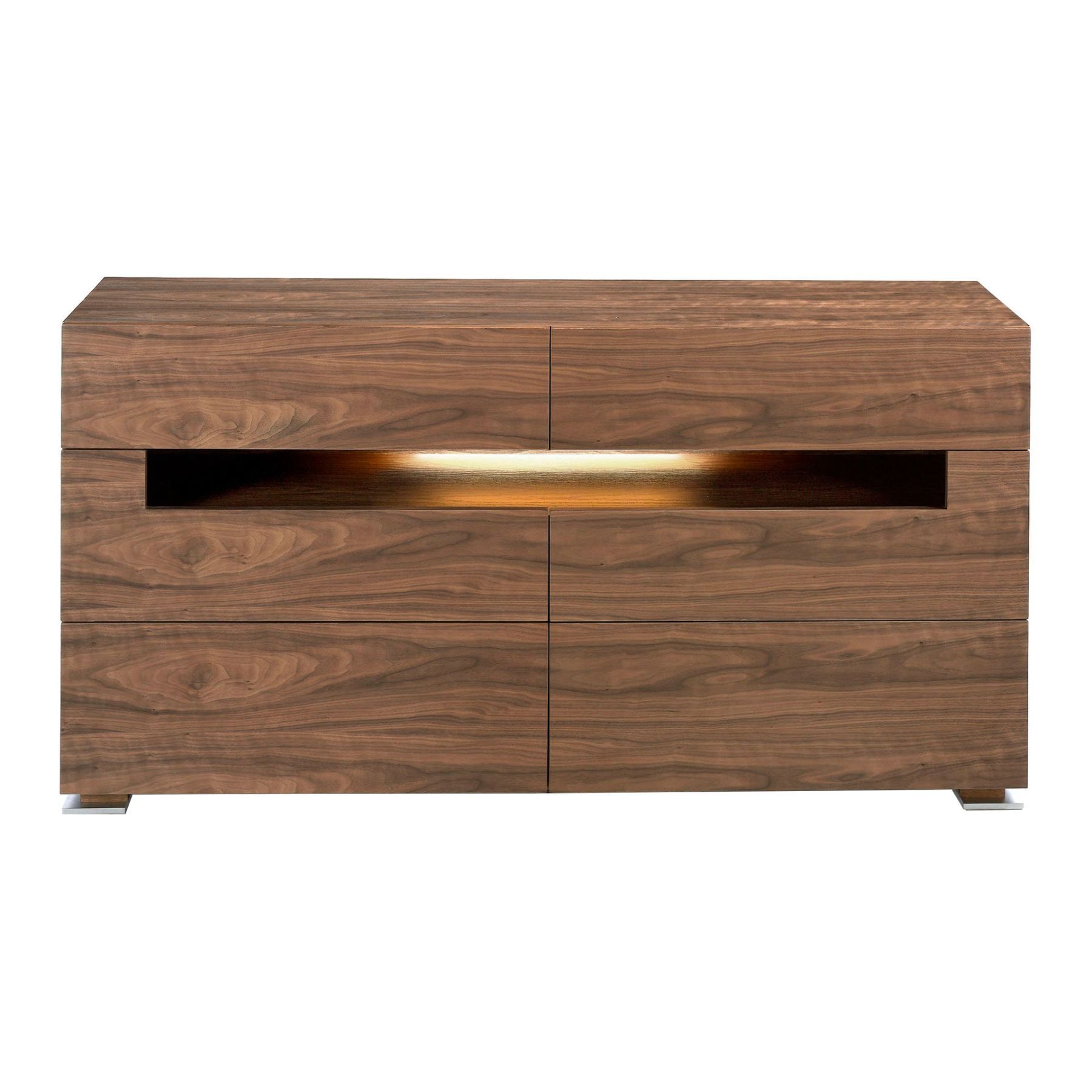 Комод из МДФ, покрытого шпоном из натурального ореха, с шестью ящиками. Центральный проем с внутренней подсветкой led.