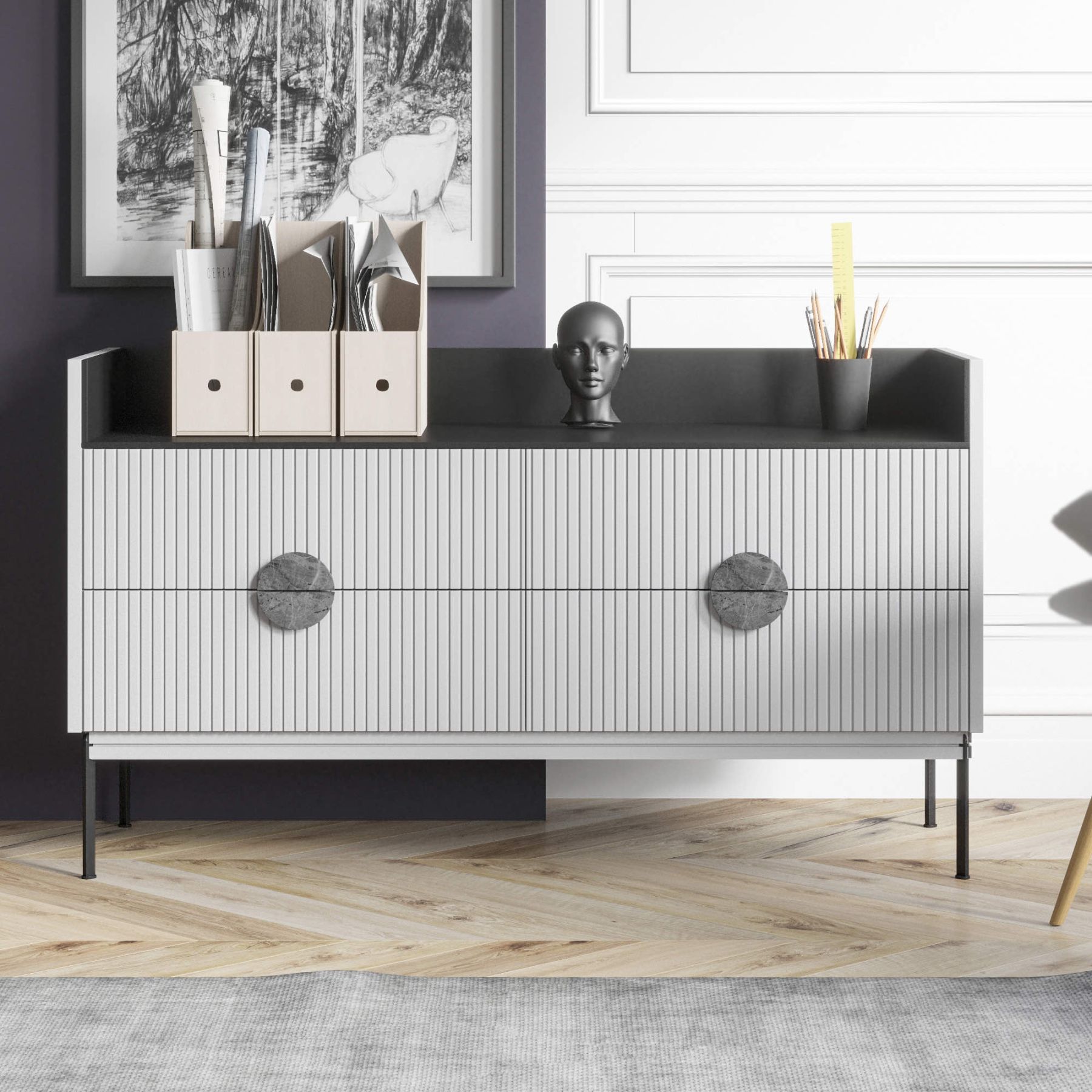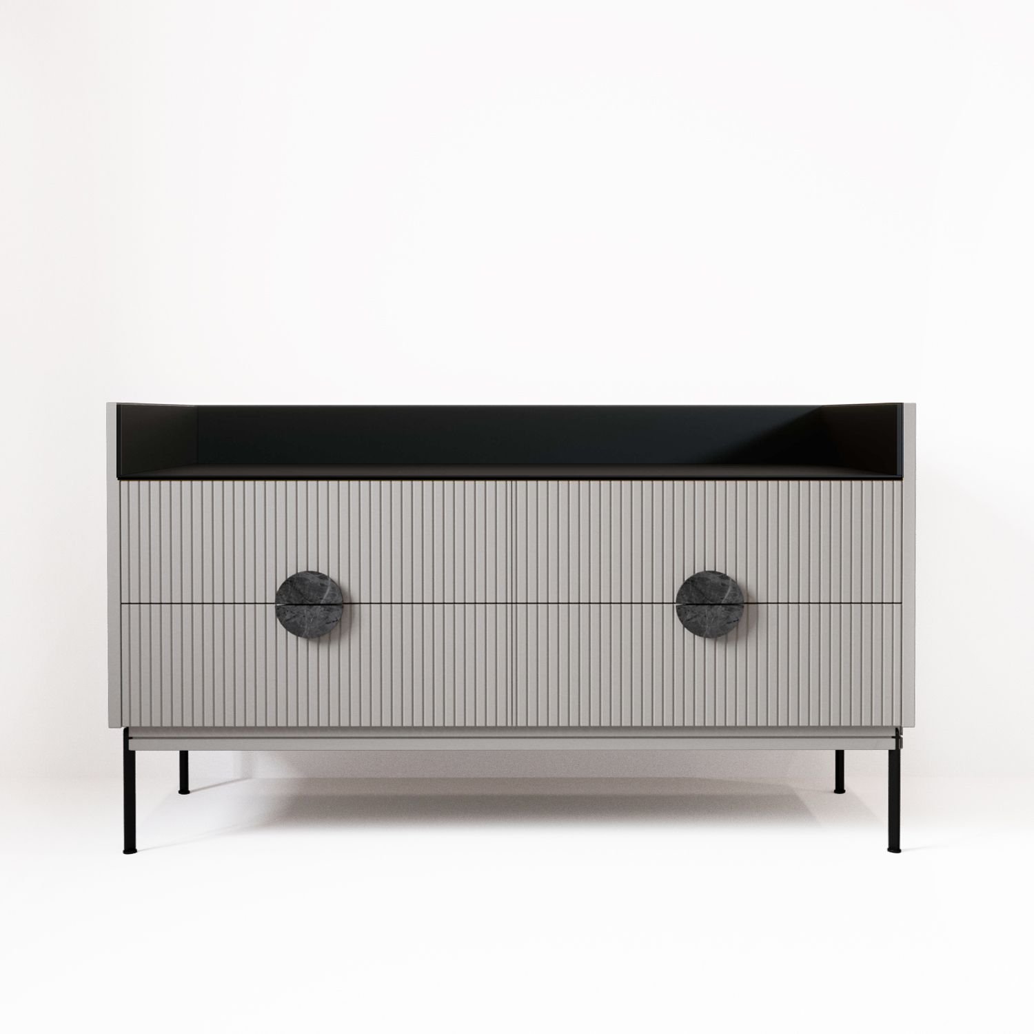 Выдвижные ящики оснащены доводчиками Корпус-эмаль светло-серая ral 7047, ниша ral 9011, ножки -черная эмаль, ral 9011