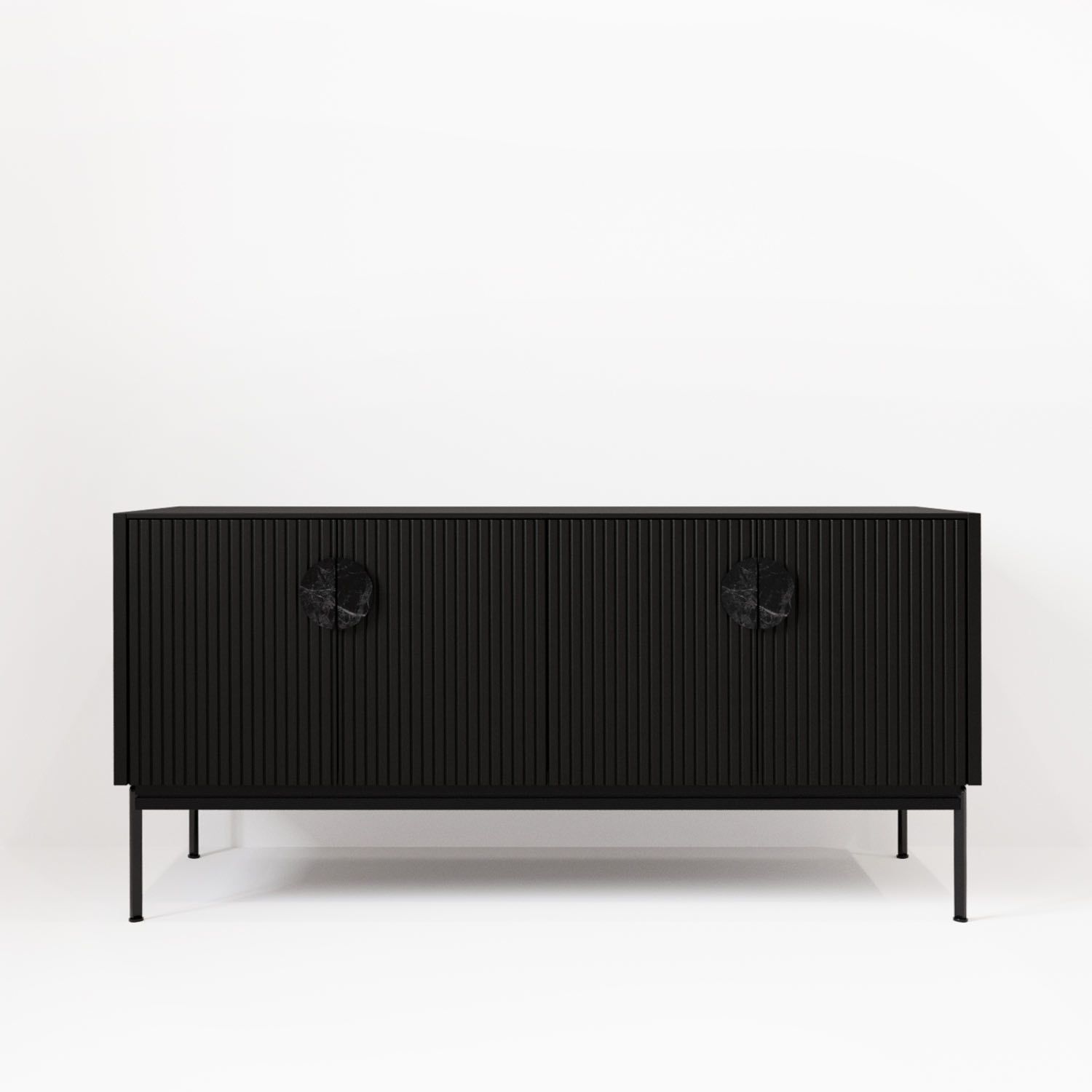 Распашные дверцы буфета оснащены петлями с доводчиками плавного закрывания Корпус эмаль черная ral 9011,ножки- черная эмаль, ral 9011