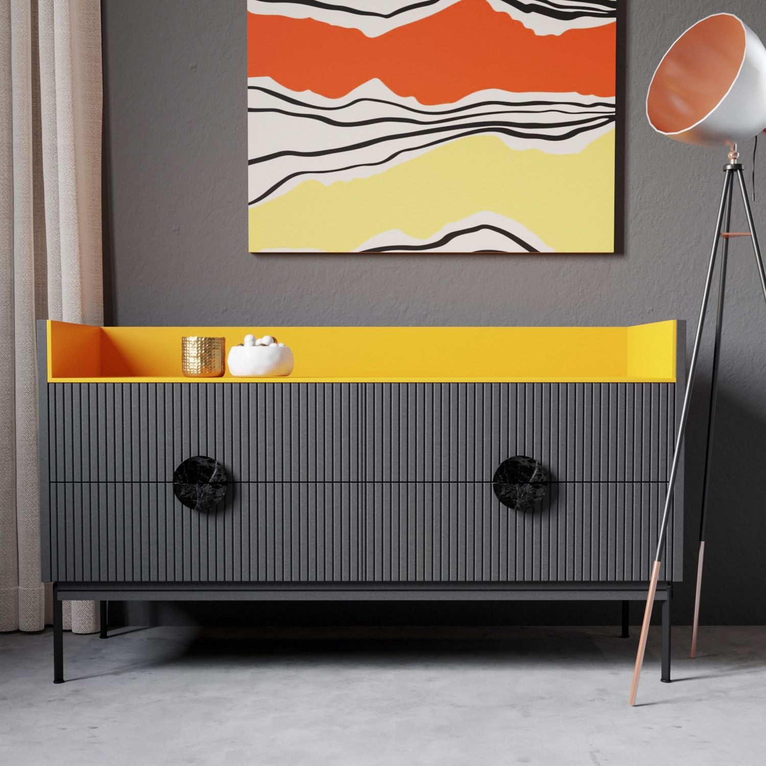 Выдвижные ящики оснащены доводчиками Корпус эмаль серая ral 7015, ниша ral 1032, ножки- черная эмаль, ral 9011