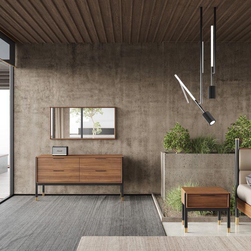 Комод на высоких ножках от бренда Mod Interiors изготовлен из высококачественного шпонированного МДФ высокой плотности. Ножки изготовлены из металла. Металлические колпачки на ножках и металлические ручки подчеркивают изысканность модели.