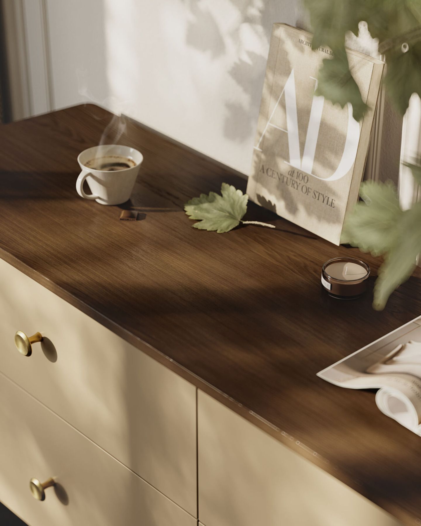 Представьте себе комод, который впитал в себя лучшее от стиля mid—century, но при этом не выглядит излишне винтажным и идеально впишется в современный интерьер. Добавьте к этому идеальные формы — строгая симметрия, каплевидная форма ножек, заметная текстура дерева и безупречная европейская фурнитура — и перед вами комод из коллекции BERGEN.
