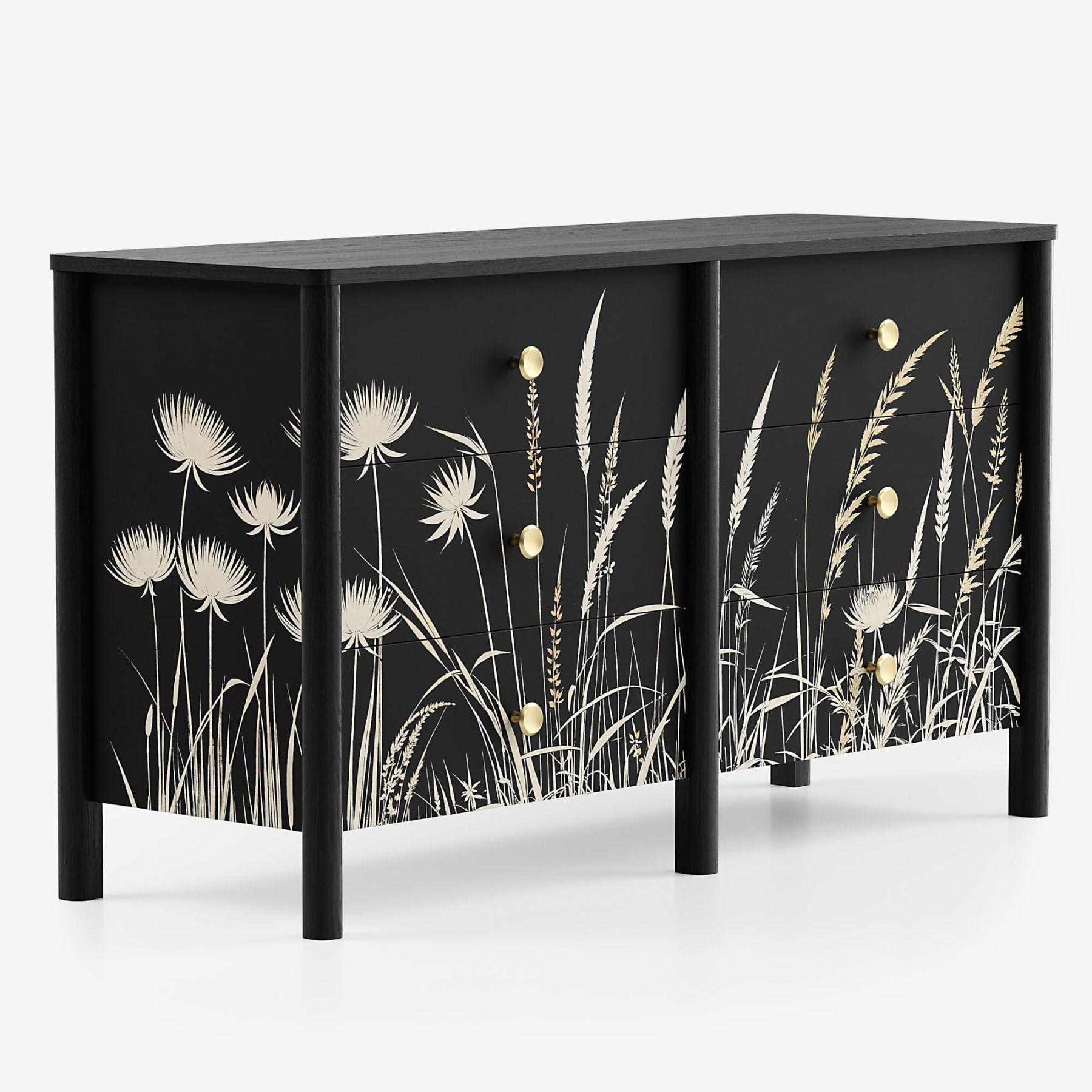 — Принты могут располагаться на фасадах мебели, а также на боковых элементах, окутывая ее с трёх сторон;