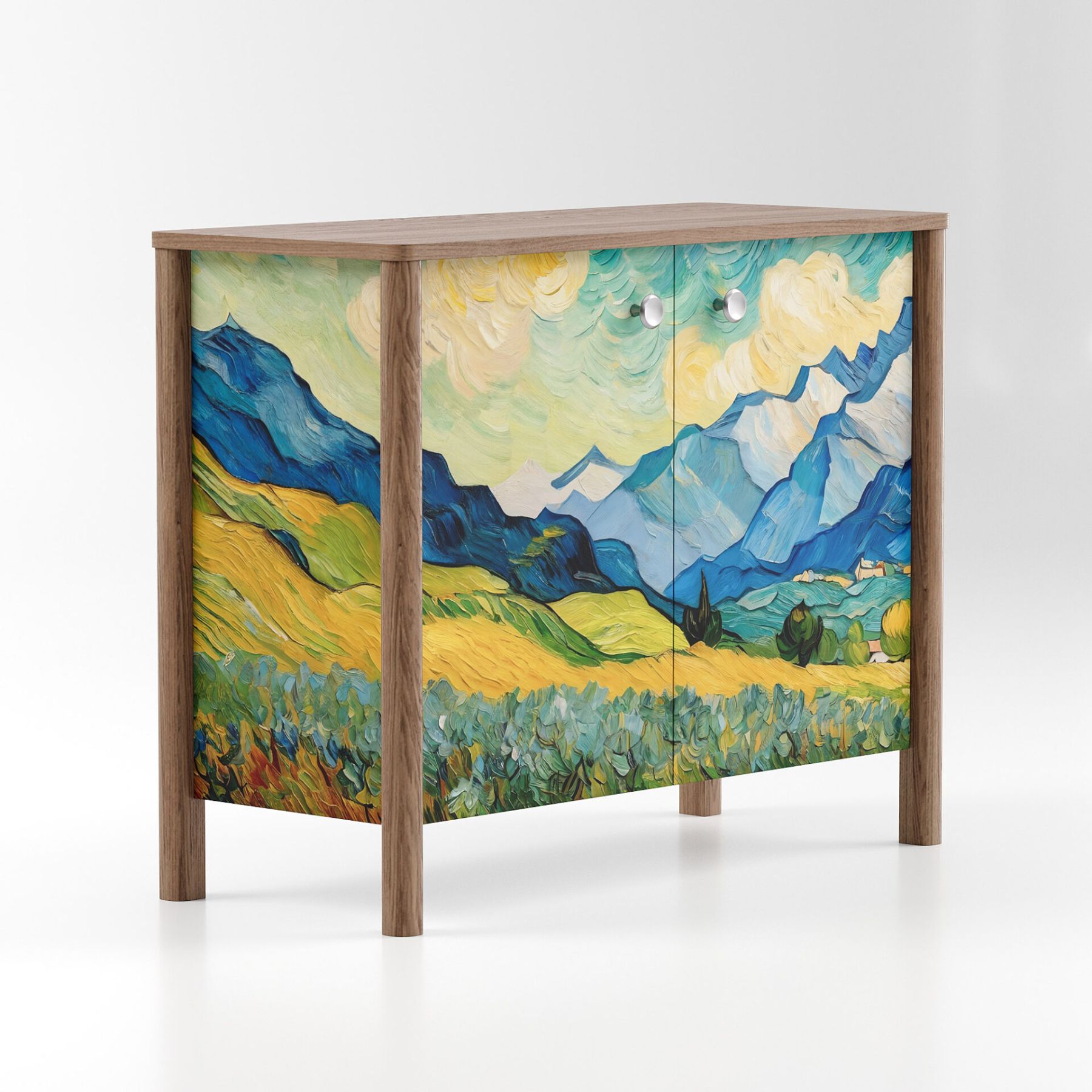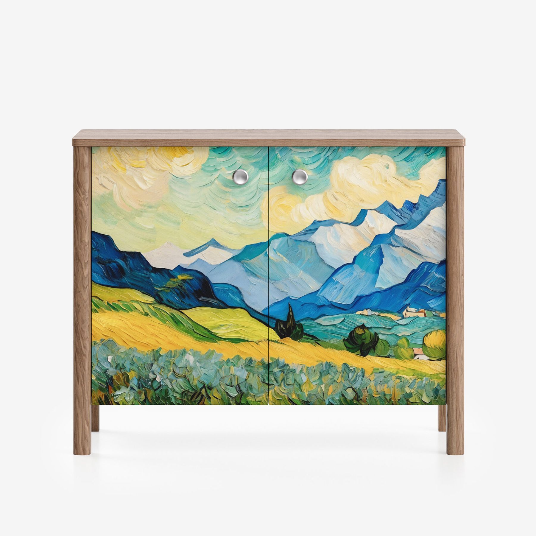 — Принты могут располагаться на фасадах мебели, а также на боковых элементах, окутывая ее с трёх сторон;