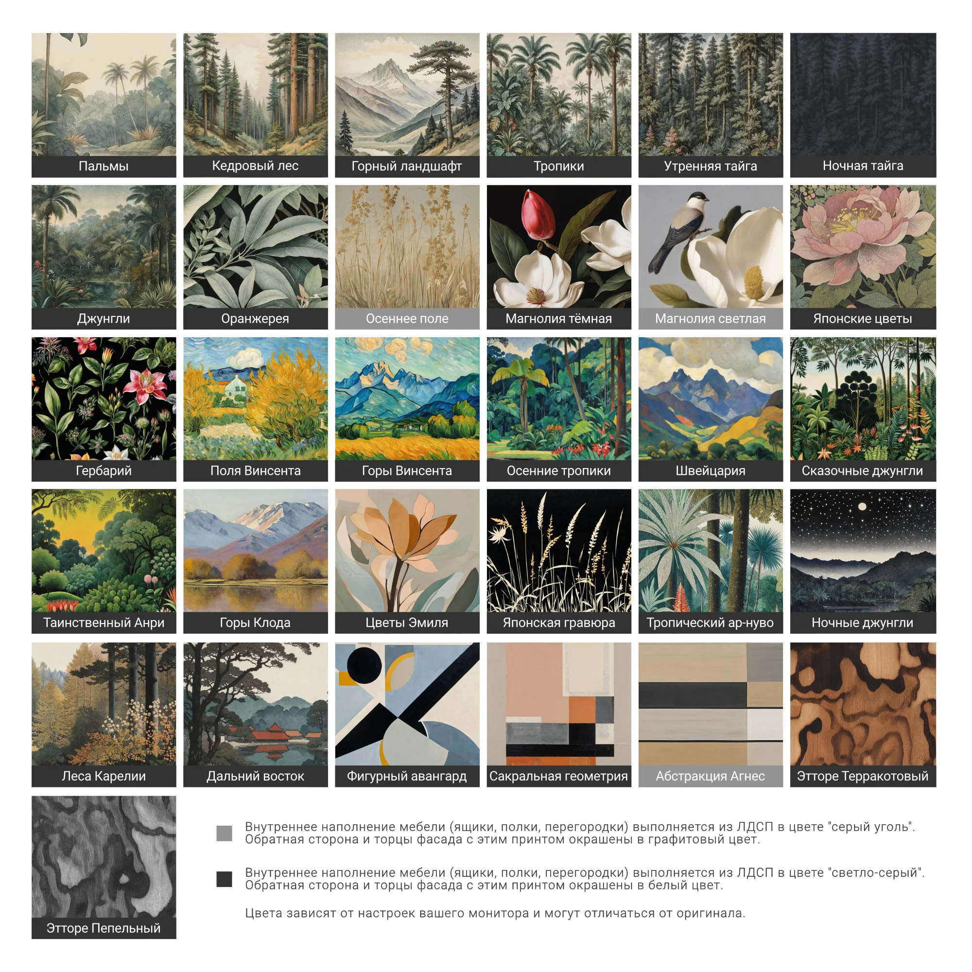— Принты могут располагаться на фасадах мебели, а также на боковых элементах, окутывая ее с трёх сторон;