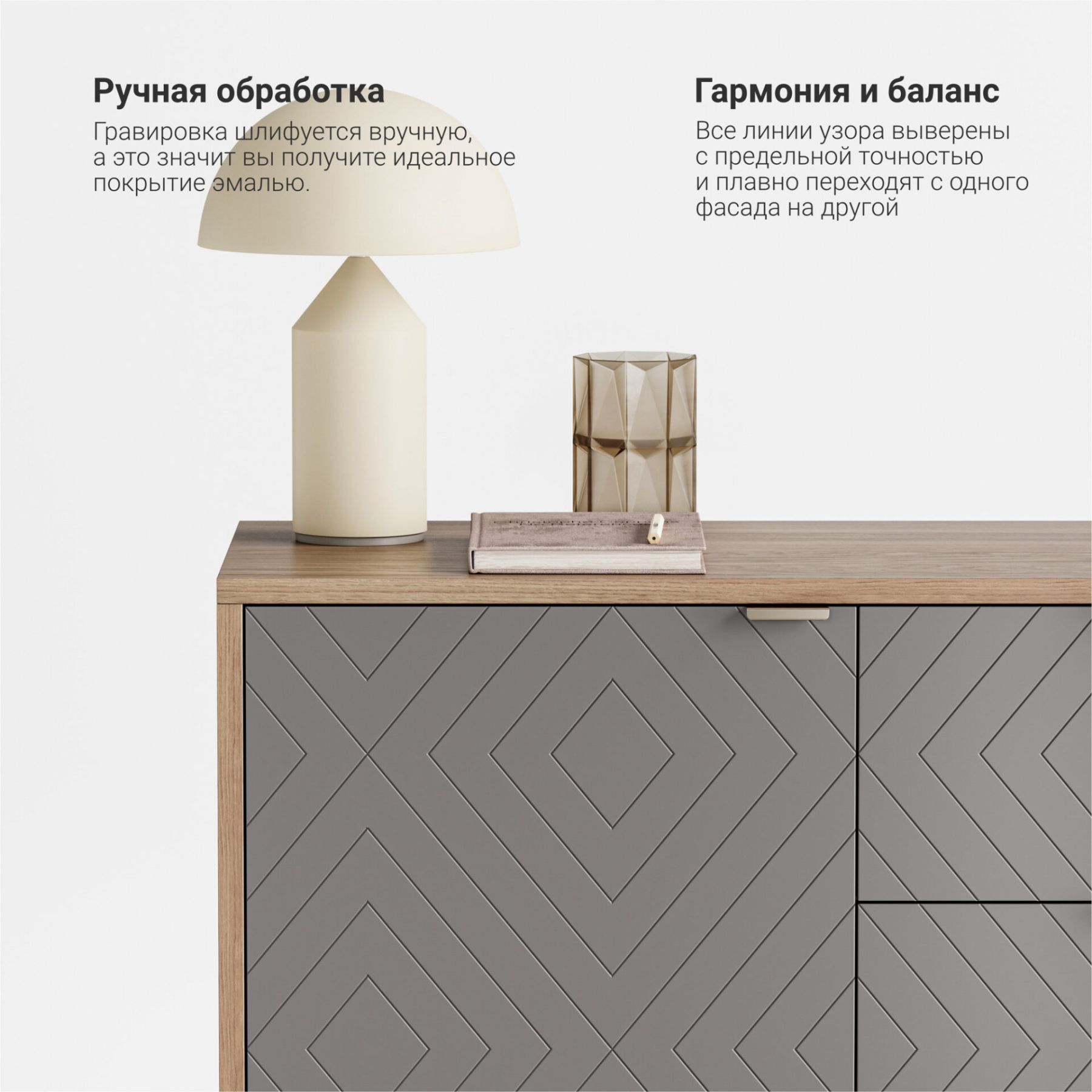 Все фасады регулируются для выравнивания узора гравировки;