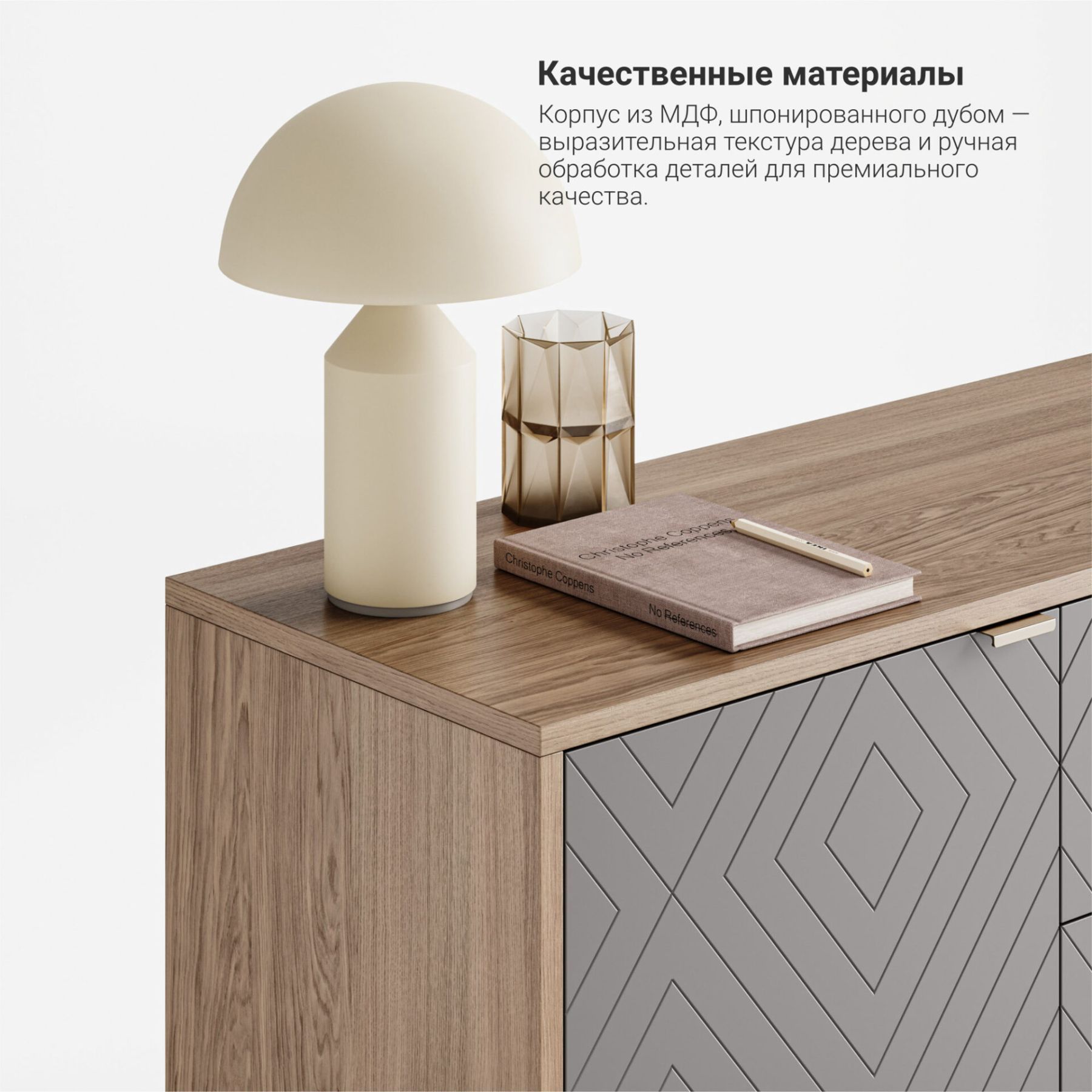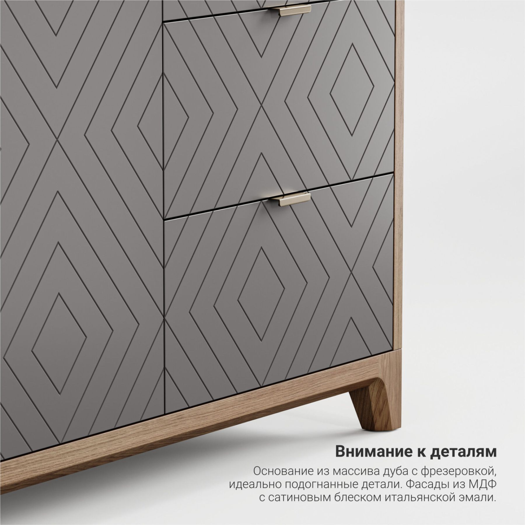 Отличительной особенностью мебели из серии CASE является вариативность ее исполнения. Выбирайте оттенок эмали, материал корпуса, тонировку основания и ножек, а также узор гравировки. Кроме того, вы можете заказать комод, который будет полностью покрыт натуральным шпоном дуба.