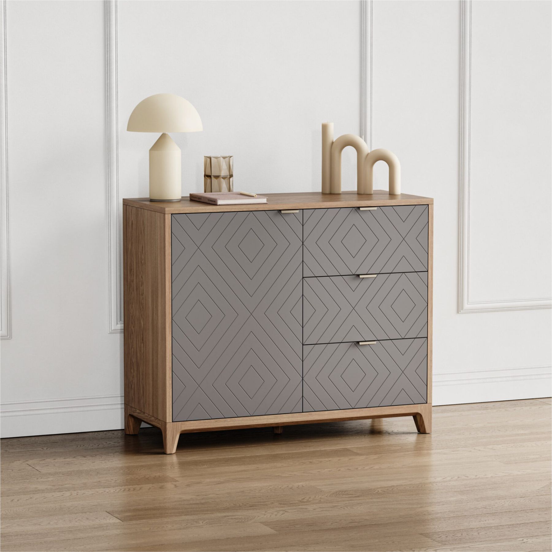 Комод CASE CS029 это функциональность, выраженная в компактной форме. Продуманное наполнение из трёх вместительных ящиков и секции с полками позволяют использовать этот комод в разных помещениях — как в прихожей, так и в гостиной или спальне. Выбор тонировки дуба, цвета эмали и орнамента гравировки позволяют этому комоду адаптироваться к разным интерьерным решениям.