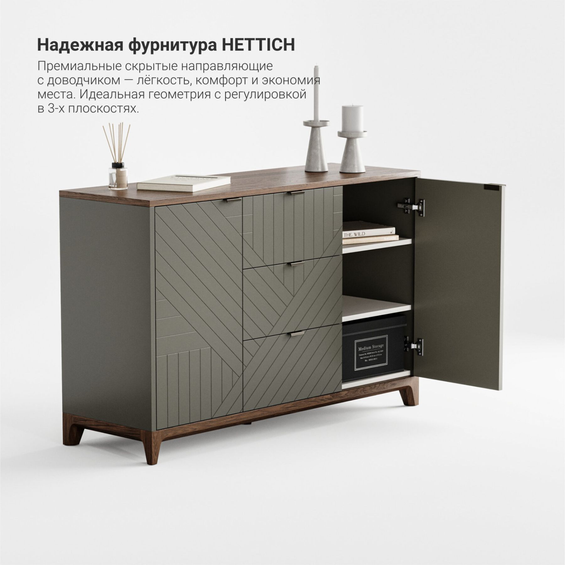 Усиленные каркасы ящиков из ЛДСП выдерживают вес до 25 кг;