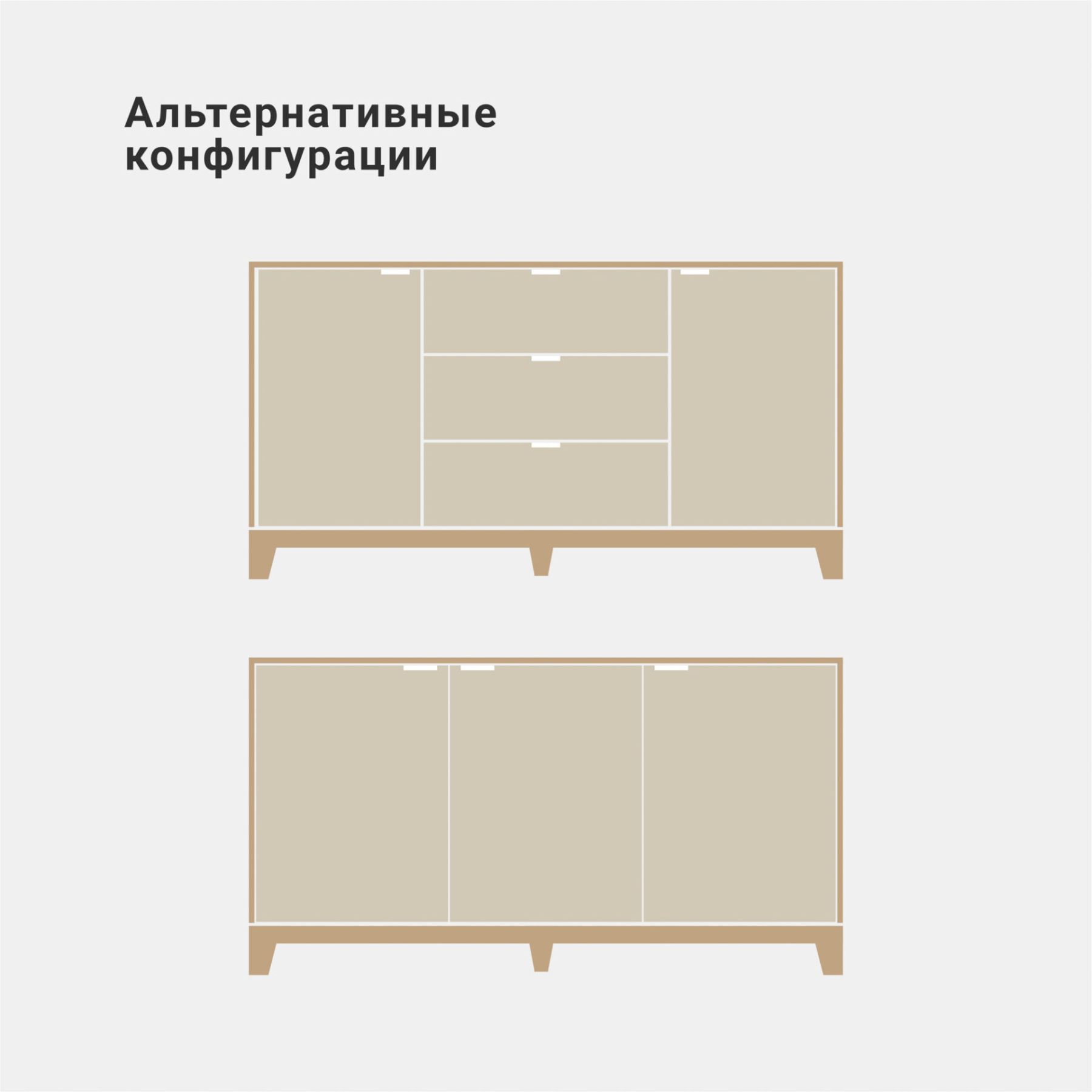 Основание и ножки выполнены из массива дуба, цвет которого вы можете выбрать из нескольких вариантов. Корпус комода может быть покрыт эмалью или натуральным шпоном дуба. Фасады могут быть покрыты эмалью с / без гравировки или натуральным шпоном дуба.