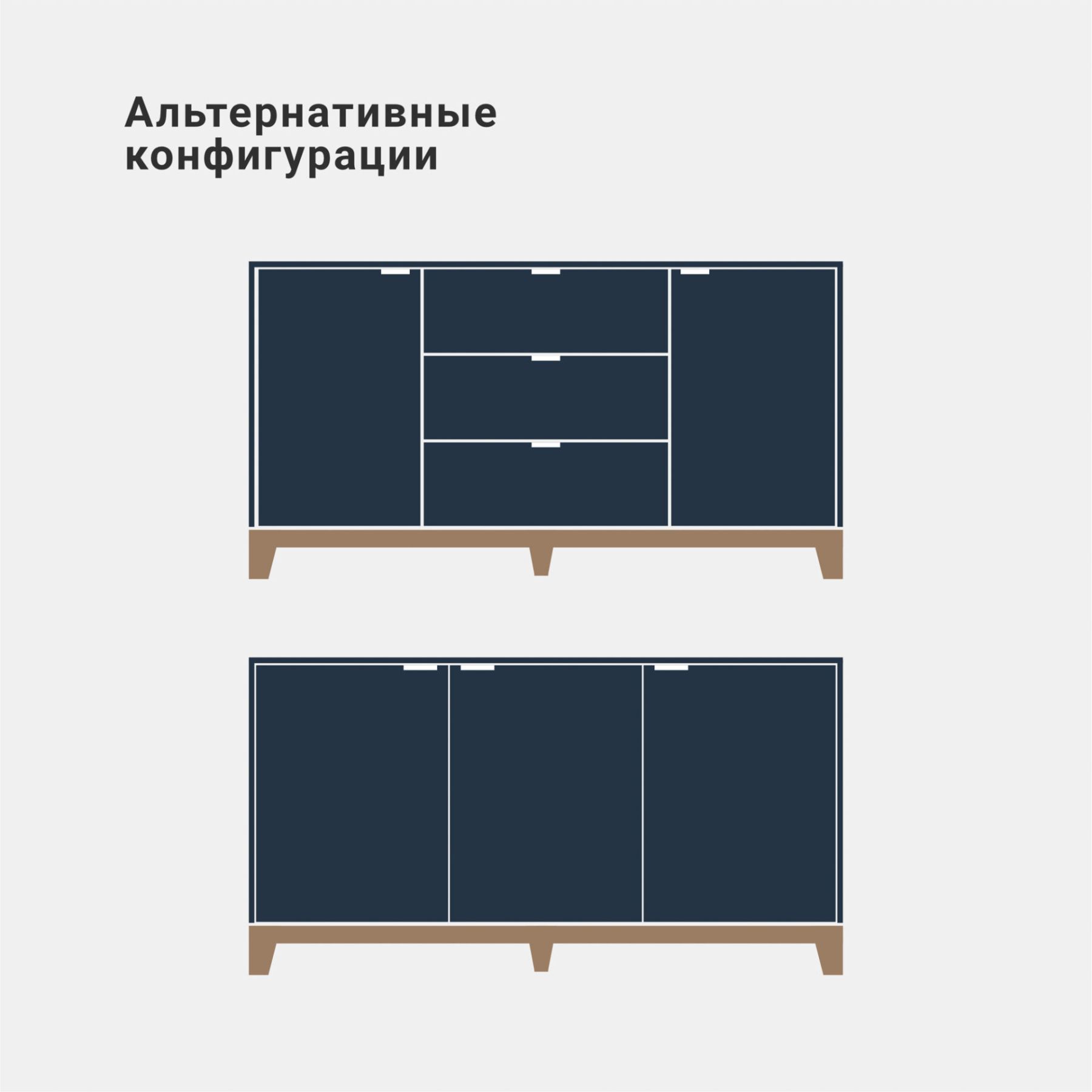 Основание и ножки выполнены из массива дуба, цвет которого вы можете выбрать из нескольких вариантов. Корпус комода может быть покрыт эмалью или натуральным шпоном дуба. Фасады могут быть покрыты эмалью с / без гравировки или натуральным шпоном дуба.