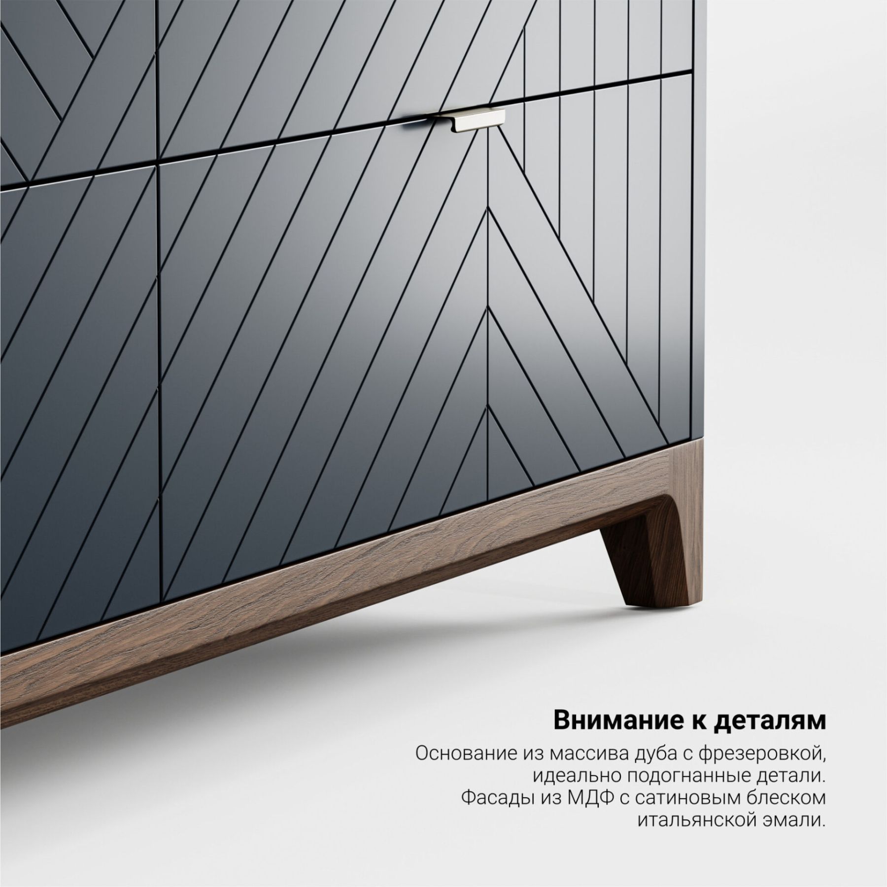 Отличительной особенностью мебели из серии CASE является вариативность ее исполнения. Выбирайте оттенок эмали, материал корпуса, тонировку основания и ножек, а также узор гравировки. Кроме того, вы можете заказать комод, который будет полностью покрыт натуральным шпоном дуба.