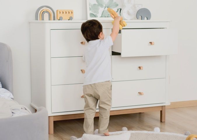 Доска надежно крепится к комоду, при этом не портит его поверхности.