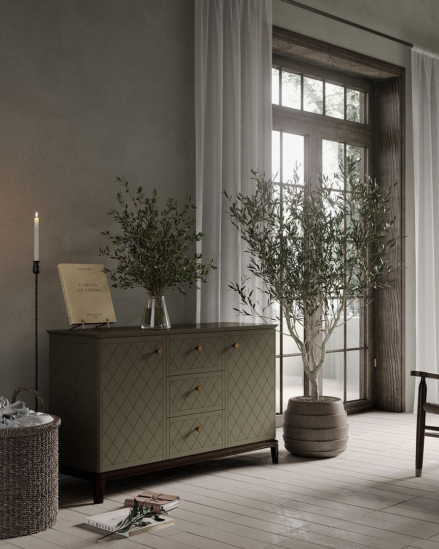 На создание этого комода нас вдохновили ар—деко и северный модерн: в нем угадываются черты обоих стилей. Золотые элементы, плавные очертания и ненавязчивые геометрические орнаменты на эмалированных поверхностях — это нео—классика без намека на китч.