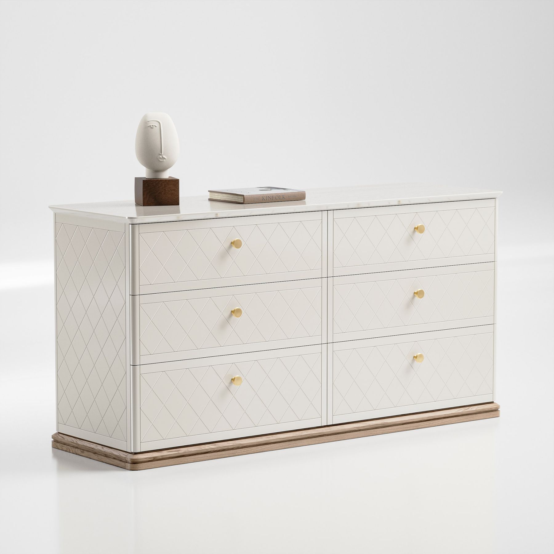 Комод оснащен 6—ю вместительными ящиками для удобного хранения ваших вещей. Фасады комода украшают гравировка и ручки в стильной отделке. Тонированное основание из массива дуба и эмалированная столешница с многогранной ступенчатой фрезеровкой демонстрируют утонченную изысканность дизайна вне времени.