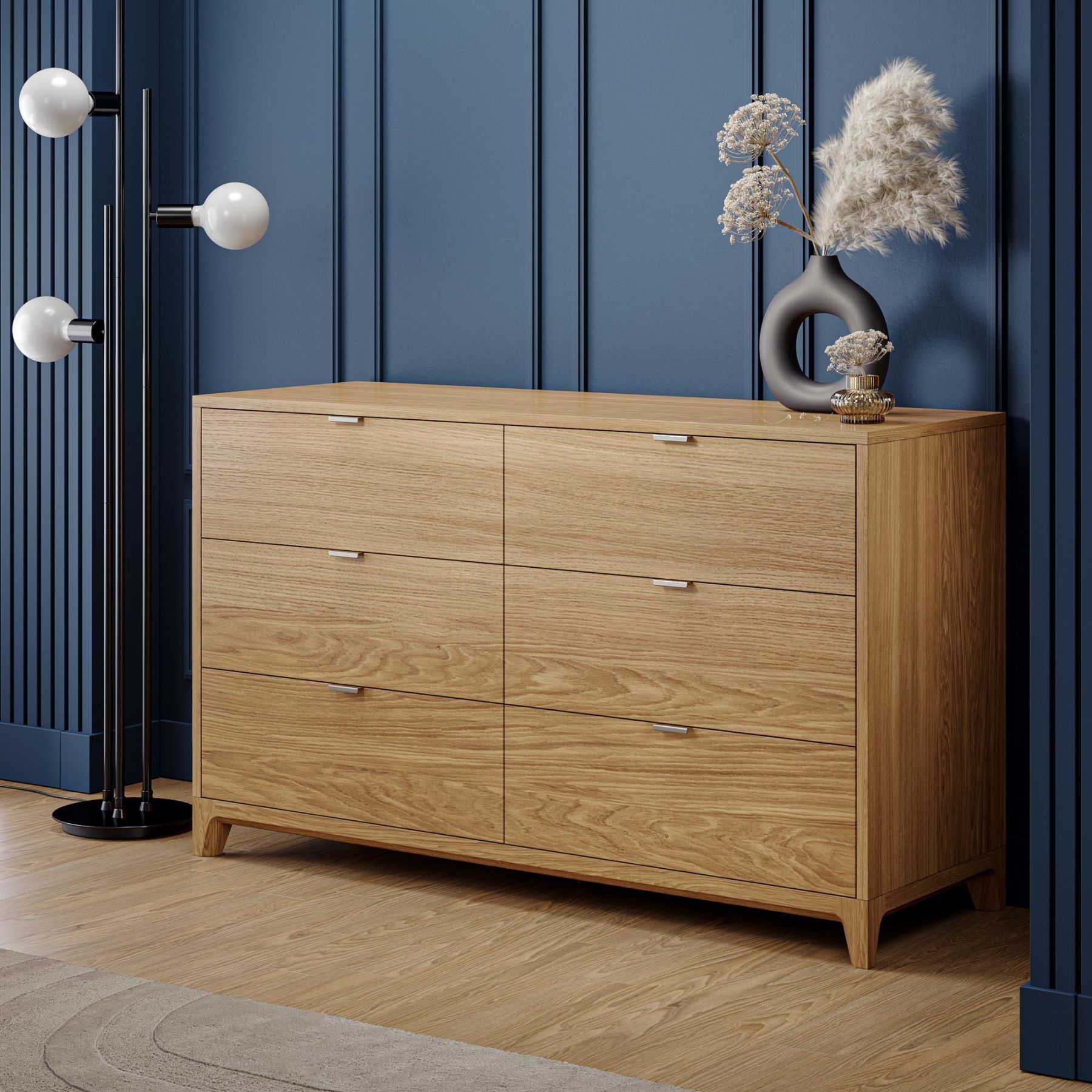 Комод с шестью выдвижными ящиками будет незаменим для хранения вещей в спальне и других помещениях.