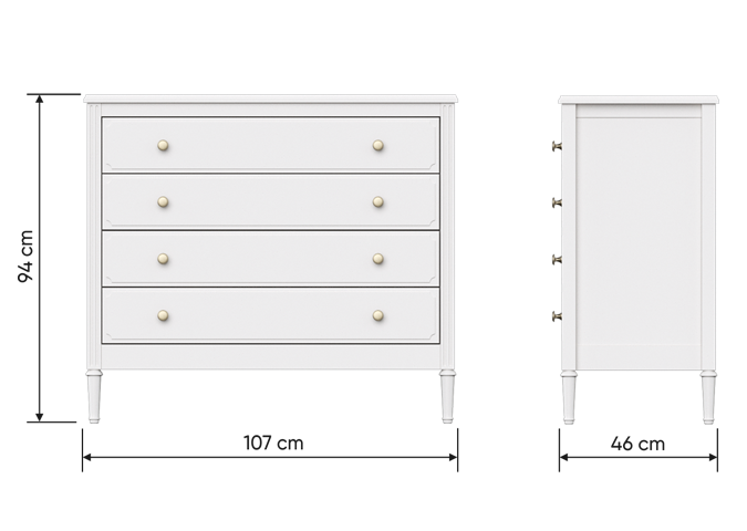 У комода прочный каркас из массива бука, корпус из безопасного мдф под эмалью.