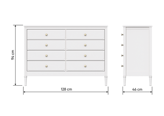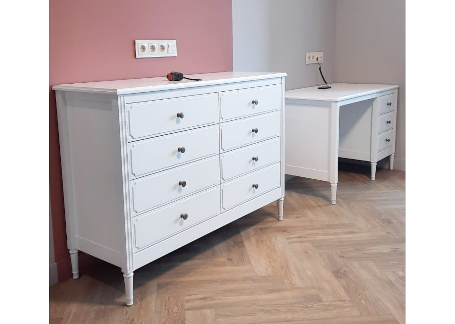У комода прочный каркас из массива бука, корпус из безопасного мдф под эмалью