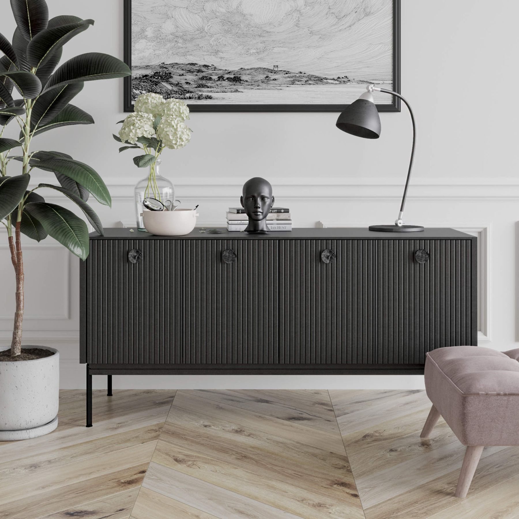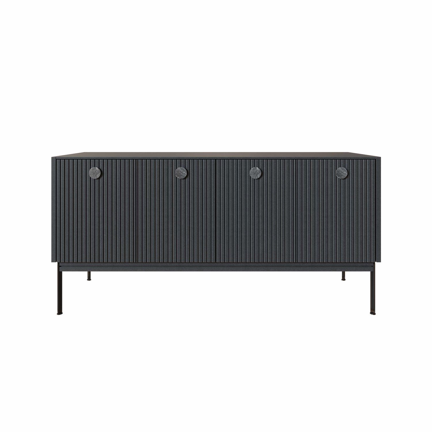 Корпус буфета выполнен из мдф. Распашные дверцы буфета оснащены петлями с доводчиками плавного закрывания Корпус эмаль ral 7015, ножки- черная эмаль, ral 9011