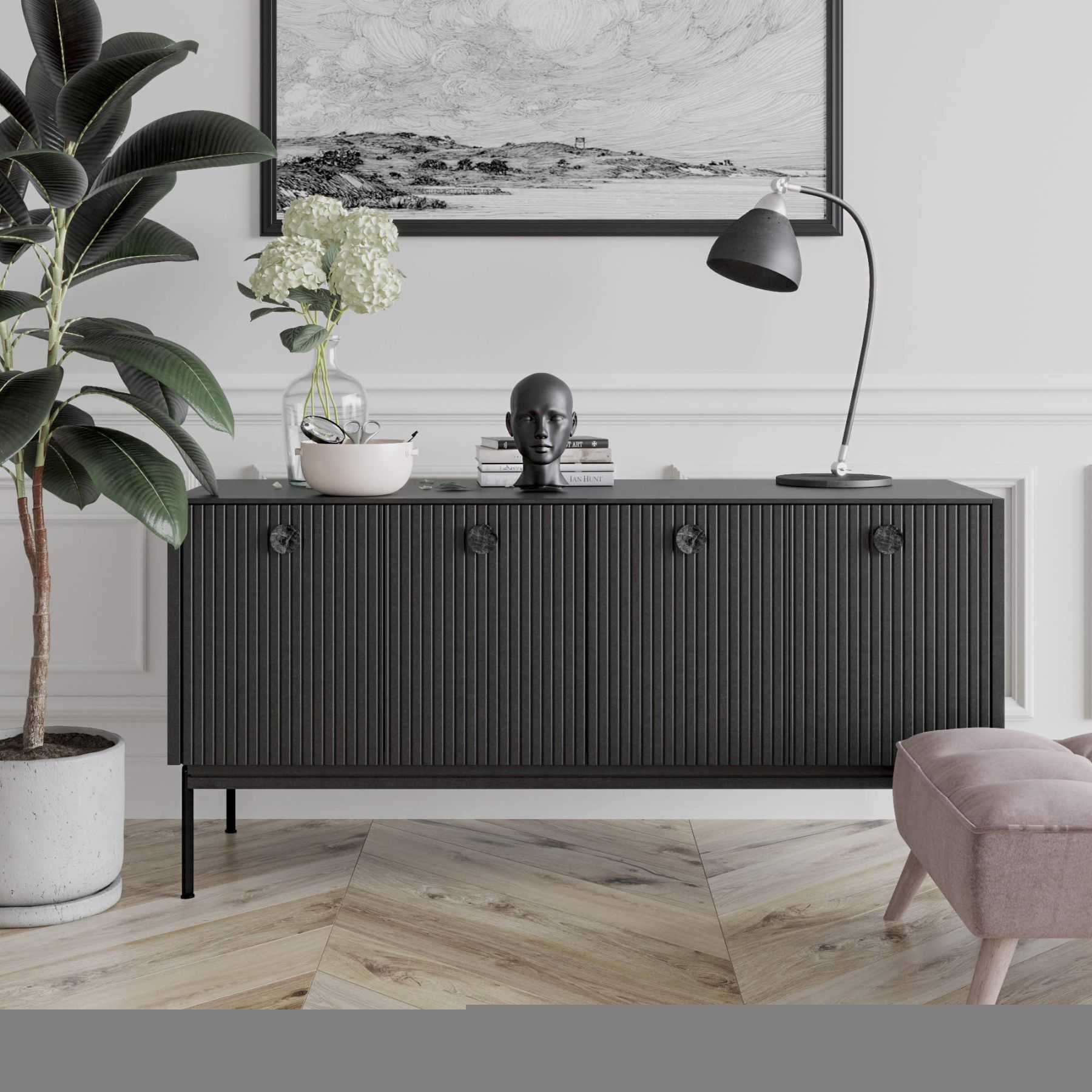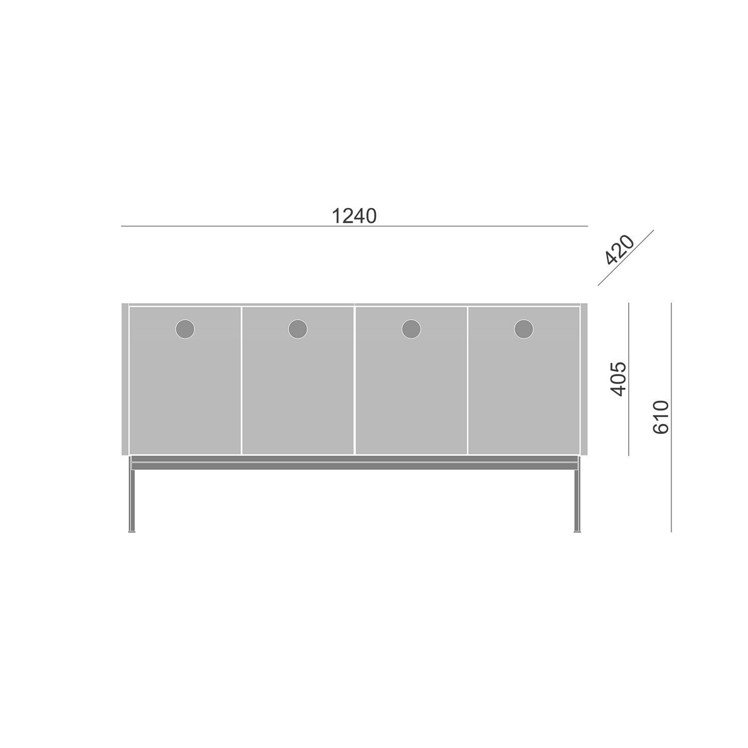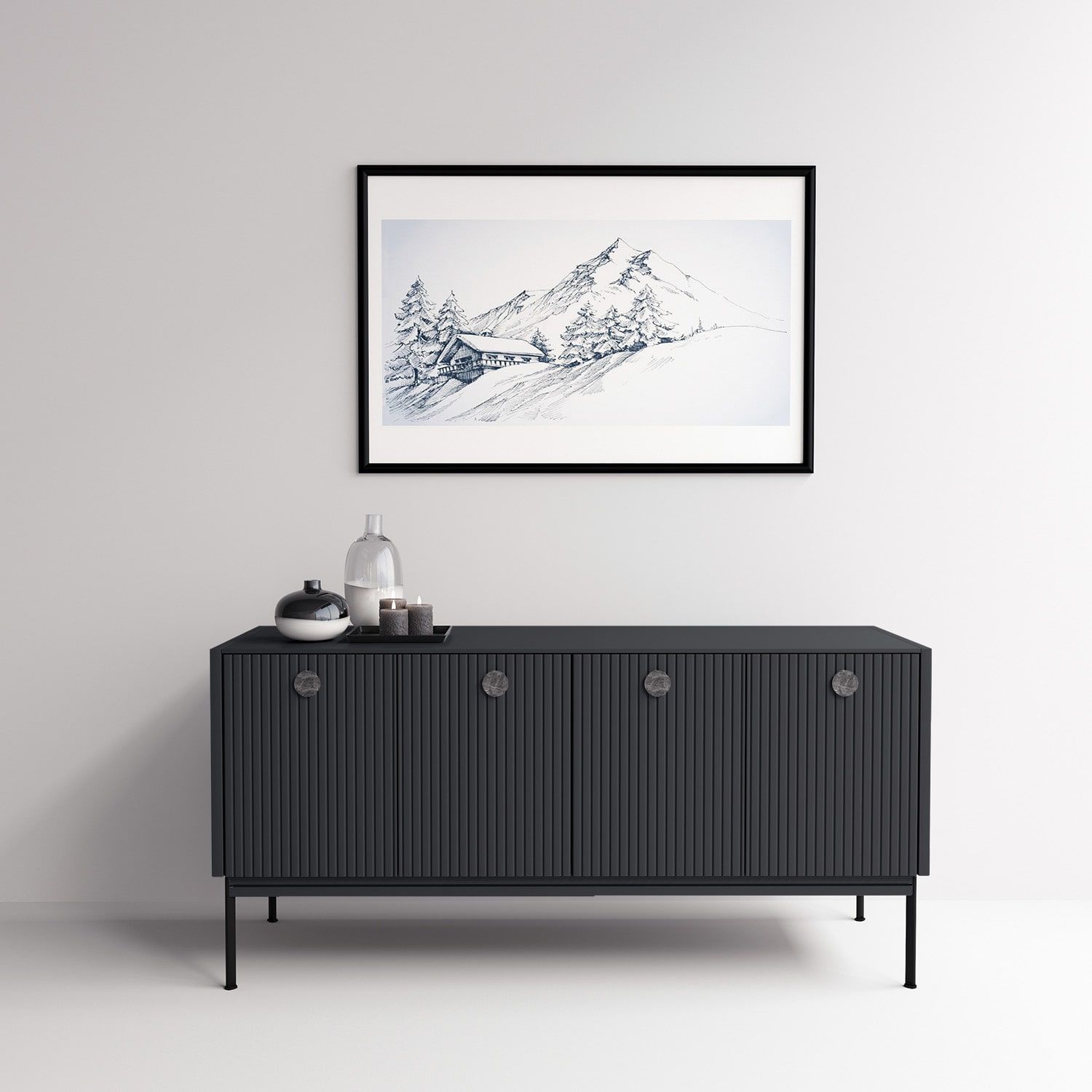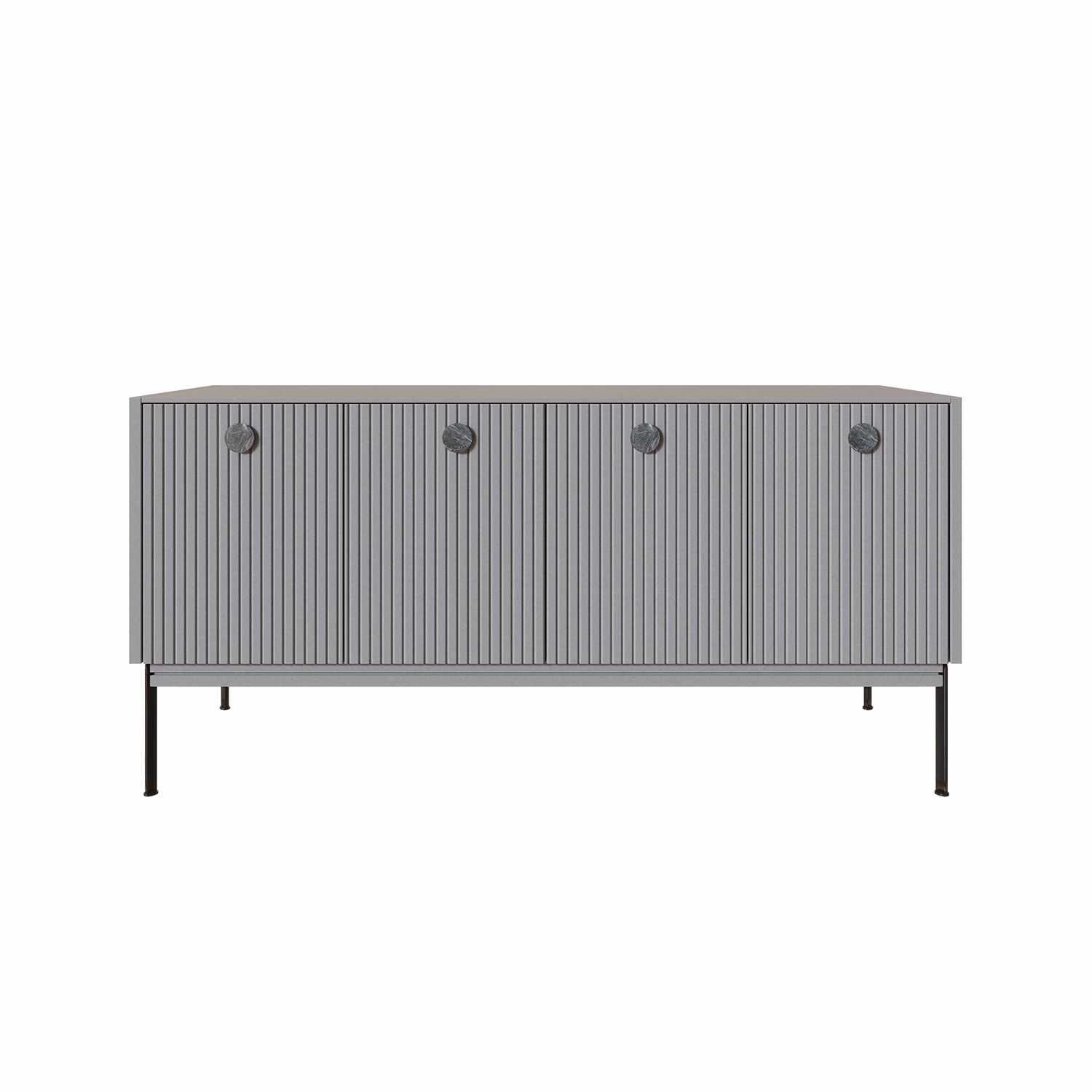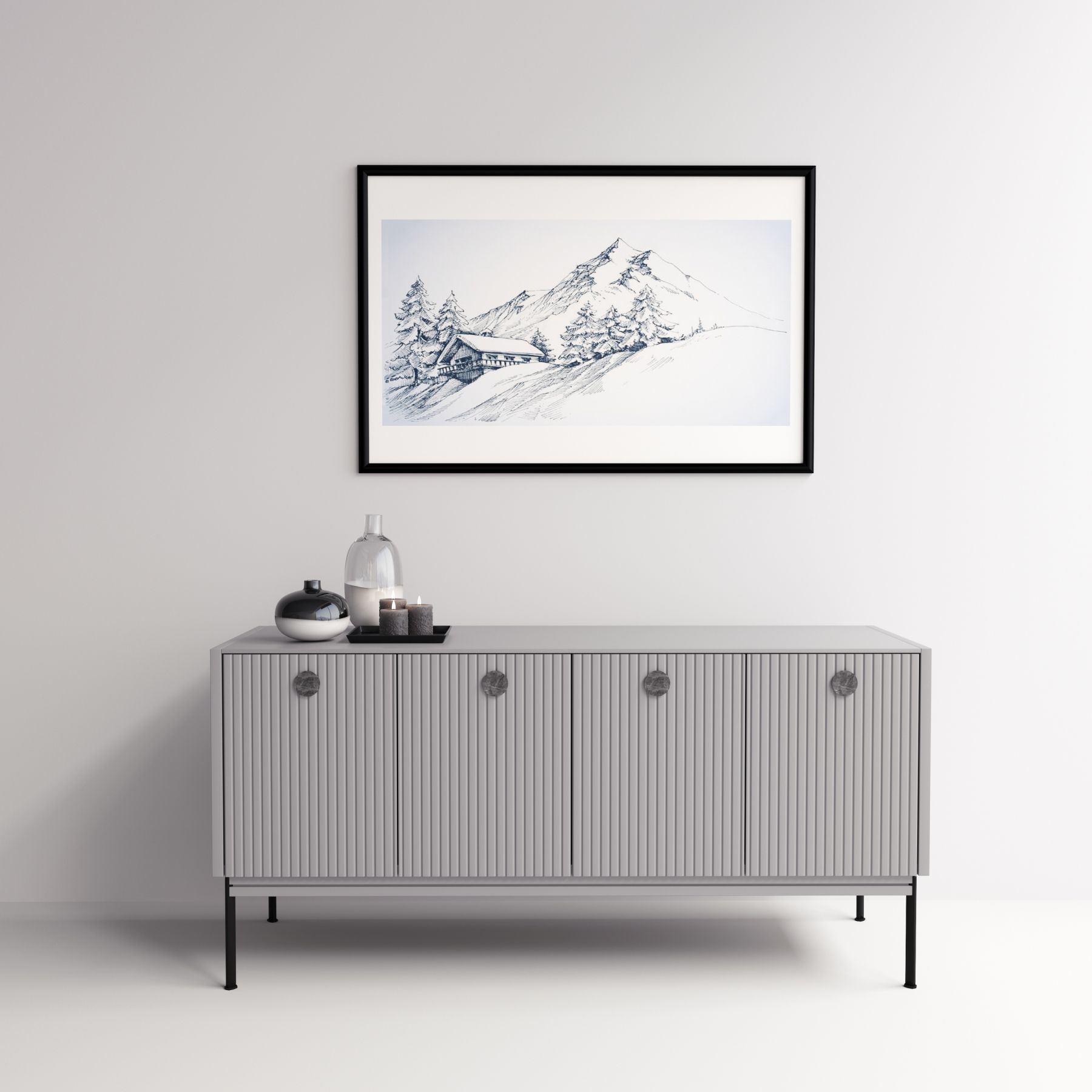 Корпус буфета выполнен из мдф. Распашные дверцы буфета оснащены петлями с доводчиками плавного закрывания Корпус эмаль ral 7047, ножки- черная эмаль, ral 9011