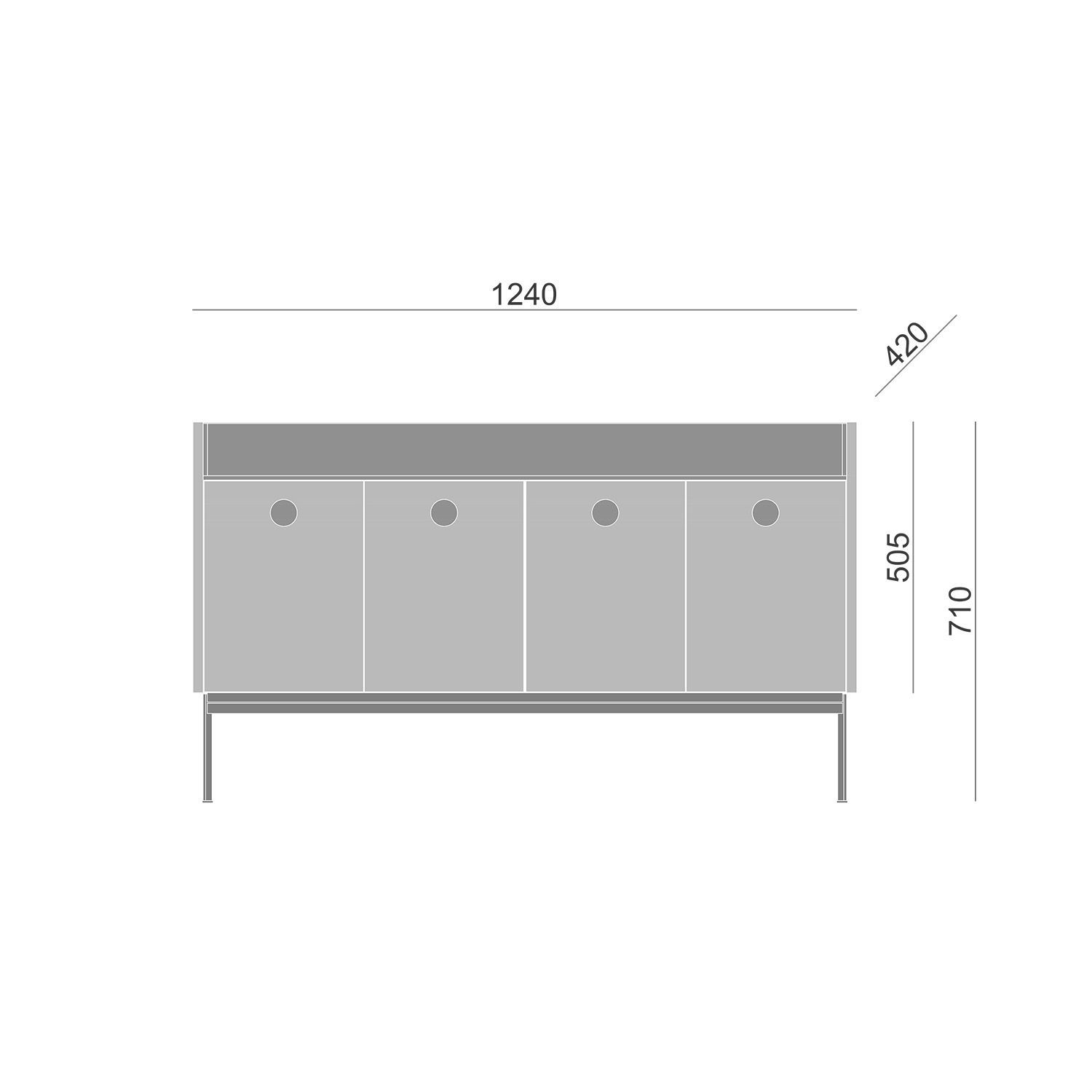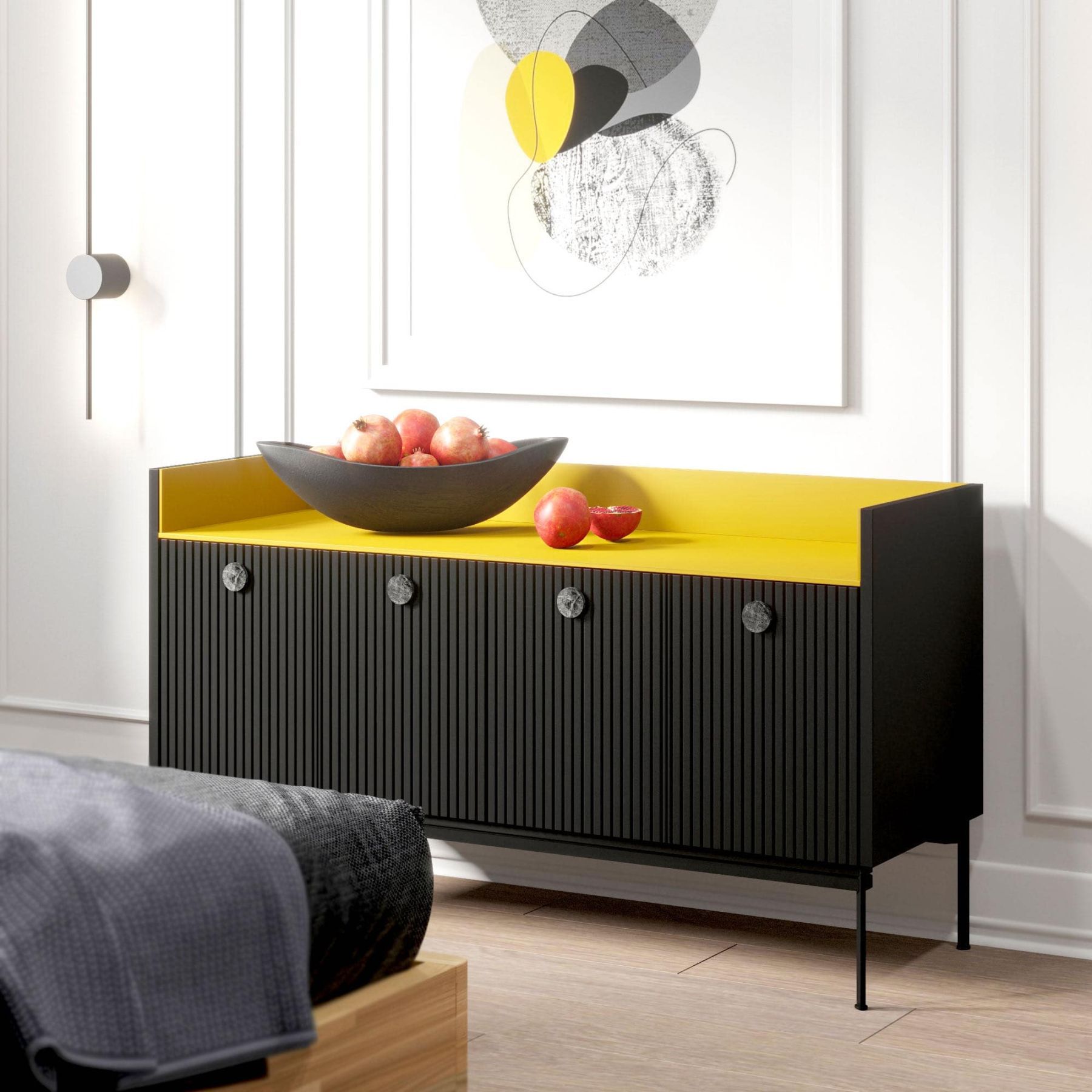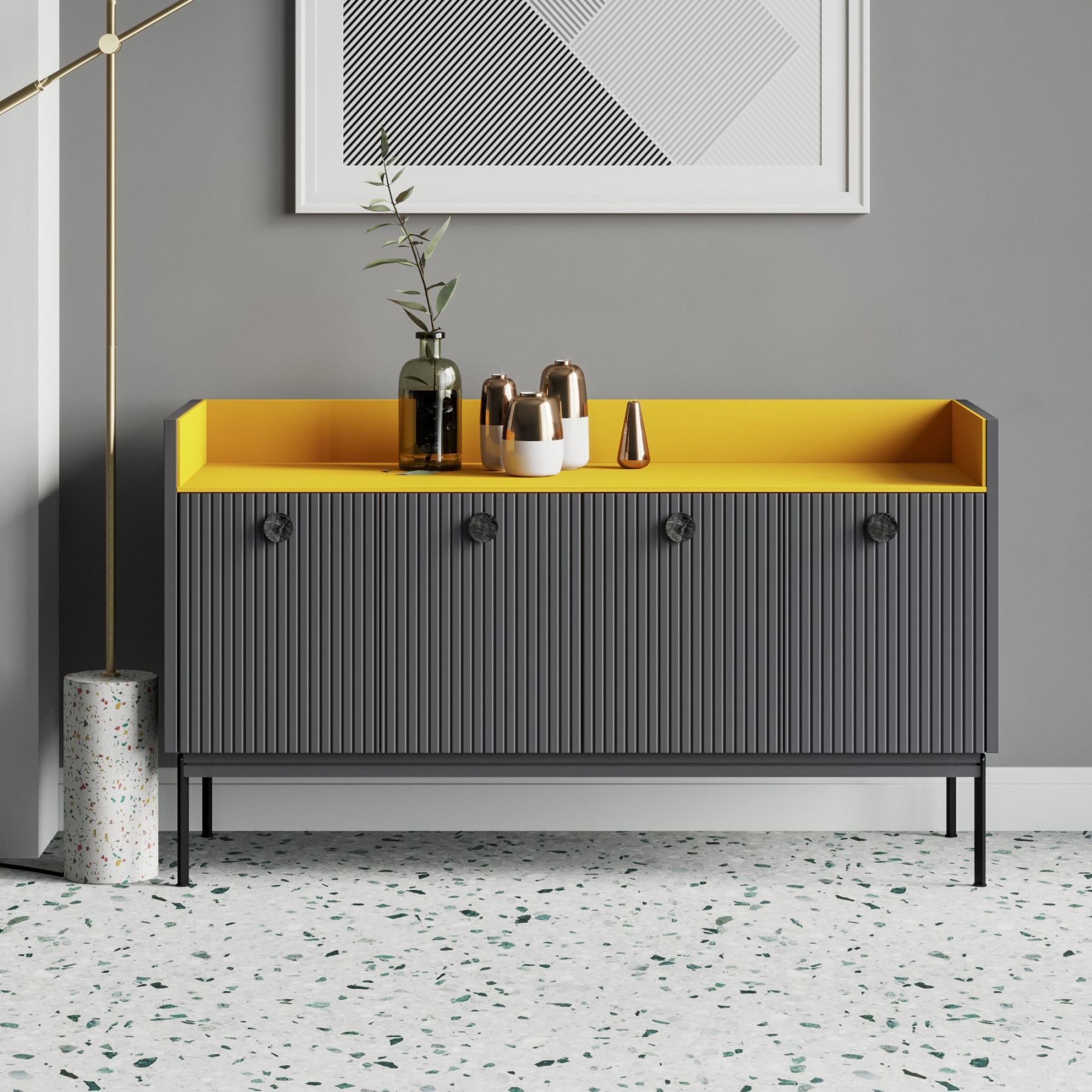 Корпус буфета выполнен из мдф. Распашные дверцы буфета оснащены петлями с доводчиками плавного закрывания Корпус эмаль ral 7015, ниша эмаль ral 1032, ножки- черная эмаль, ral 9011