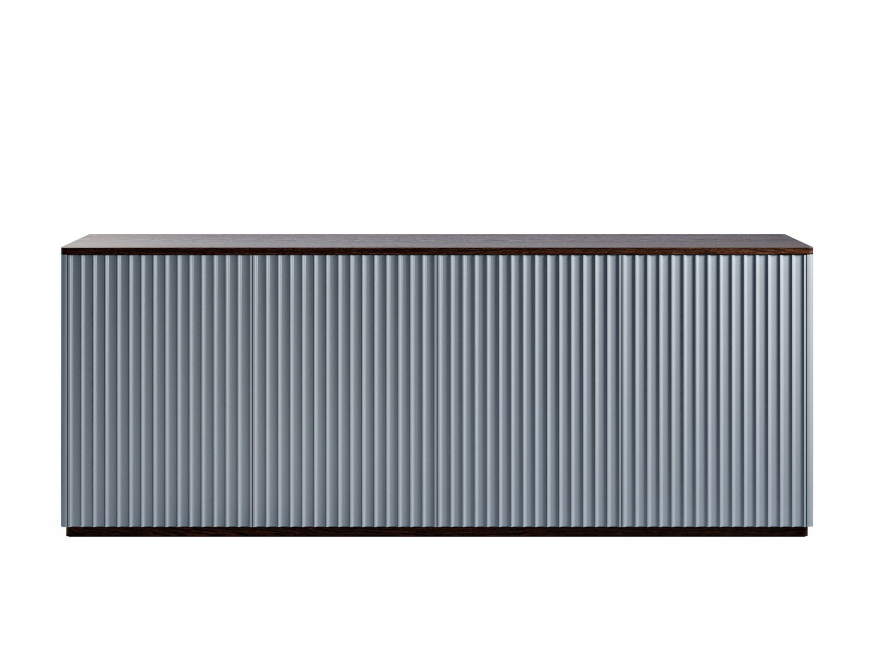 На фасадах комода нет ручек — дверцы открываются легким нажатием. Граница между фасадами практически незаметна благодаря регулировке фурнитуры в трех плоскостях.