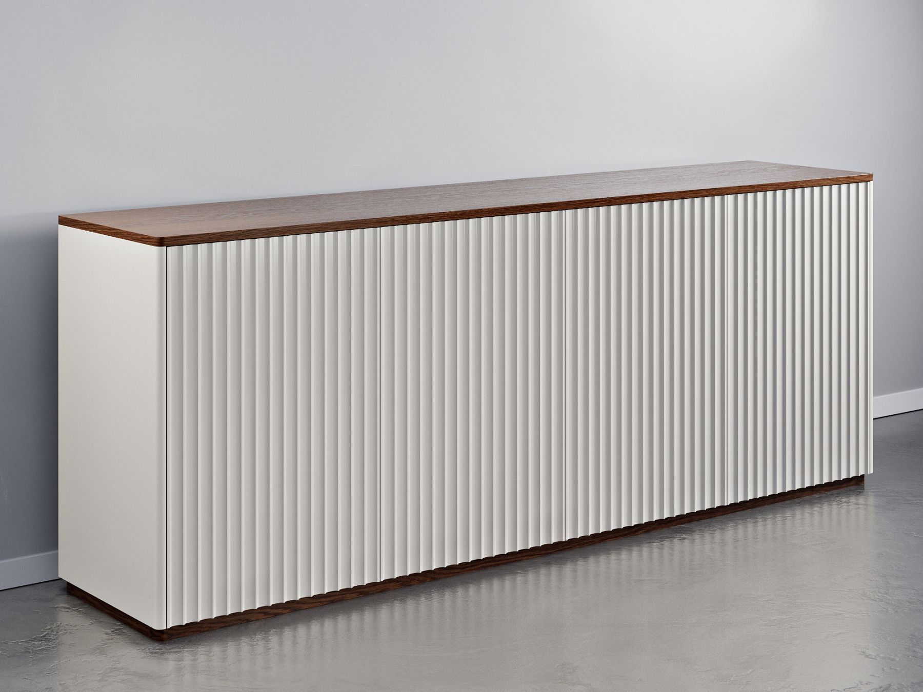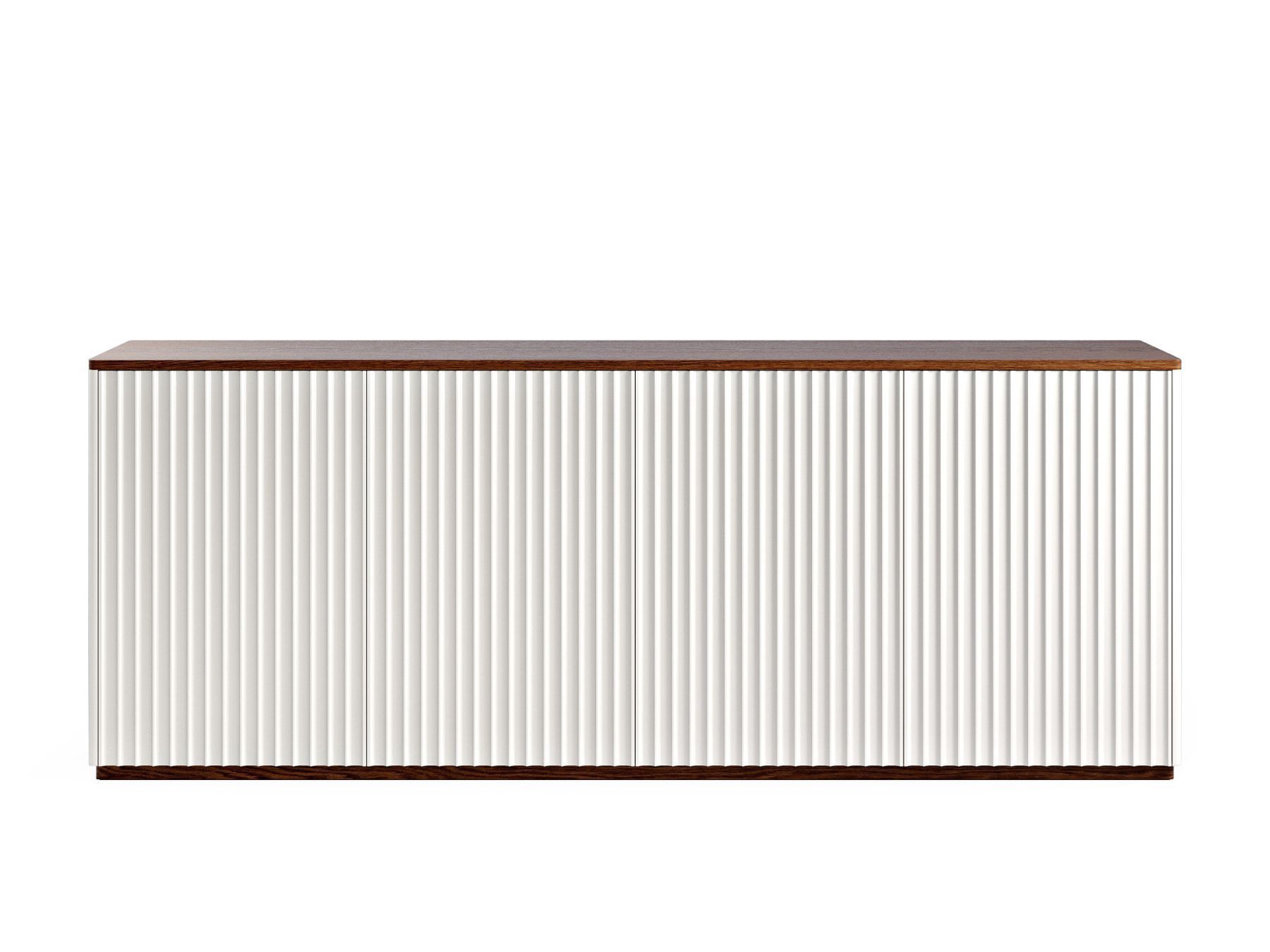 На фасадах комода нет ручек — дверцы открываются легким нажатием. Граница между фасадами практически незаметна благодаря регулировке фурнитуры в трех плоскостях.