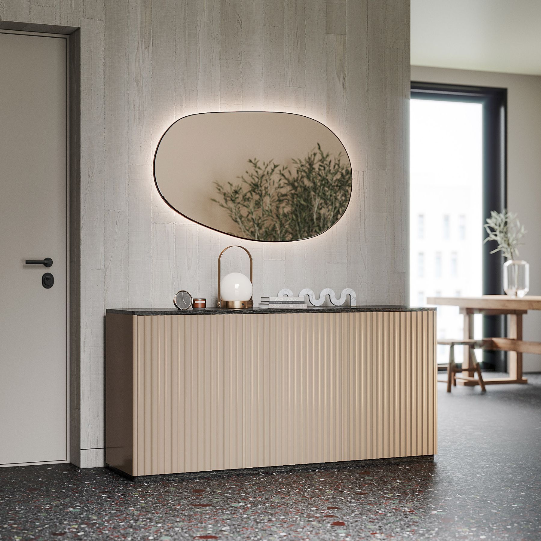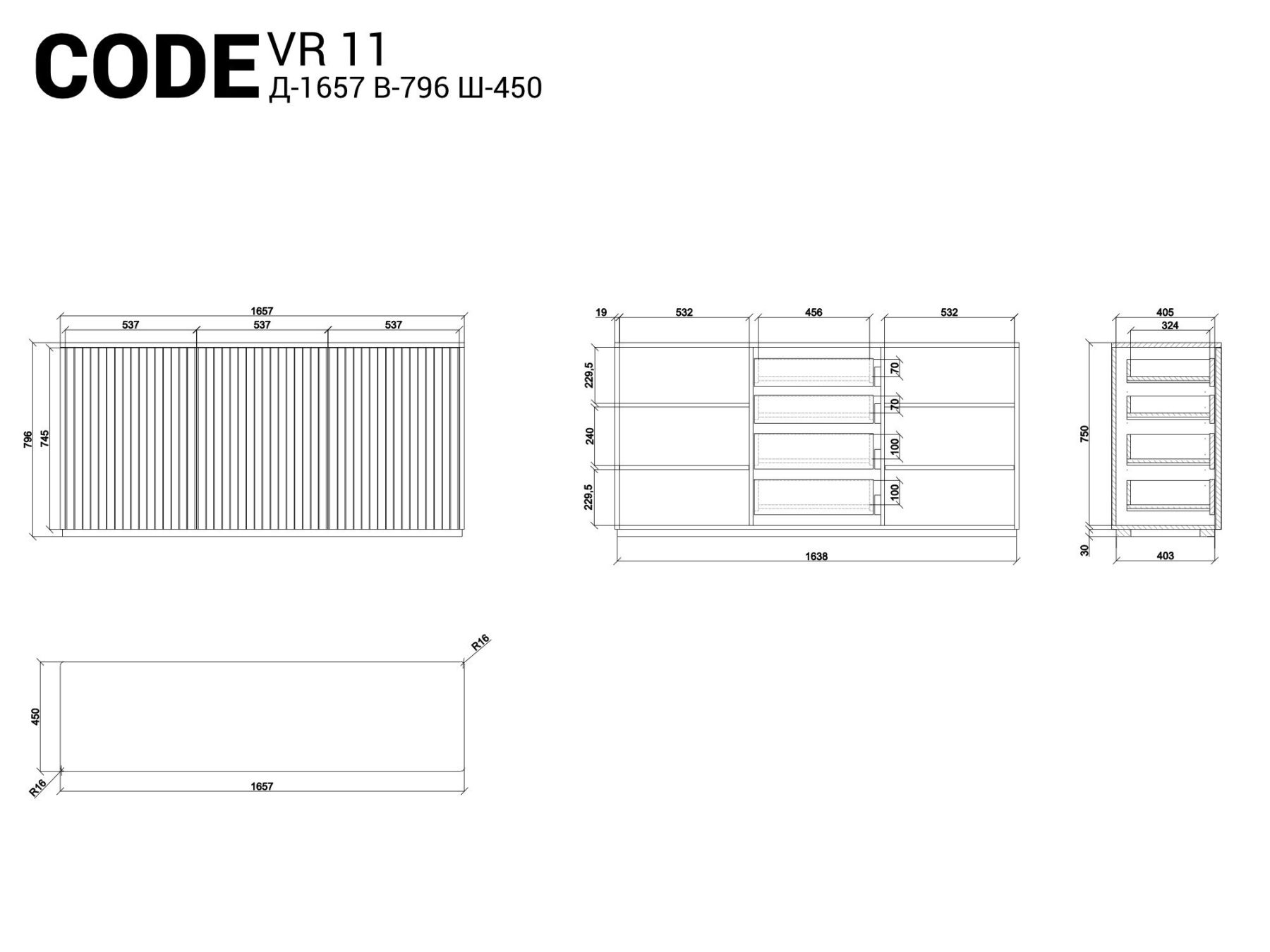 Располагающий и уютный дизайн комода VR11 обеспечивается декоративно скругленными деталями каркаса, а элегантность придает глубокая фрезеровка и строгие линии на фасадах. Дверцы вместительного комода из трех секций открываются легким нажатием, ход направляющих ящиков мягкий и бесшумный. Используйте комод отдельно или вместе с другими моделями из коллекции.