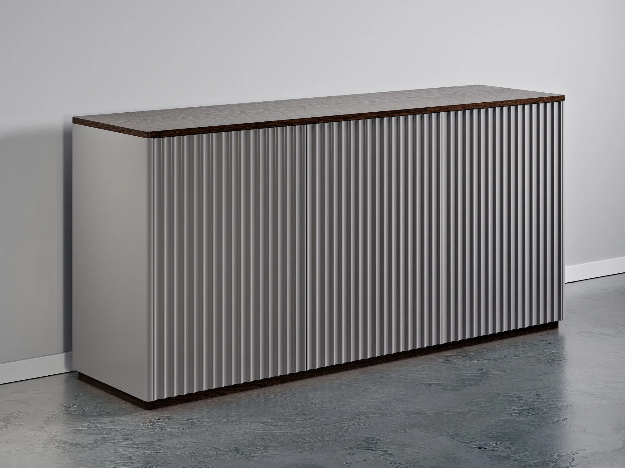 Располагающий и уютный дизайн комода VR15 обеспечивается декоративно скругленными деталями каркаса, а элегантность придает глубокая фрезеровка и строгие линии на фасадах. Дверцы вместительного комода из трех секций открываются легким нажатием, ход петель мягкий и бесшумный. Полки регулируются по высоте. Используйте комод отдельно или вместе с другими моделями из коллекции.