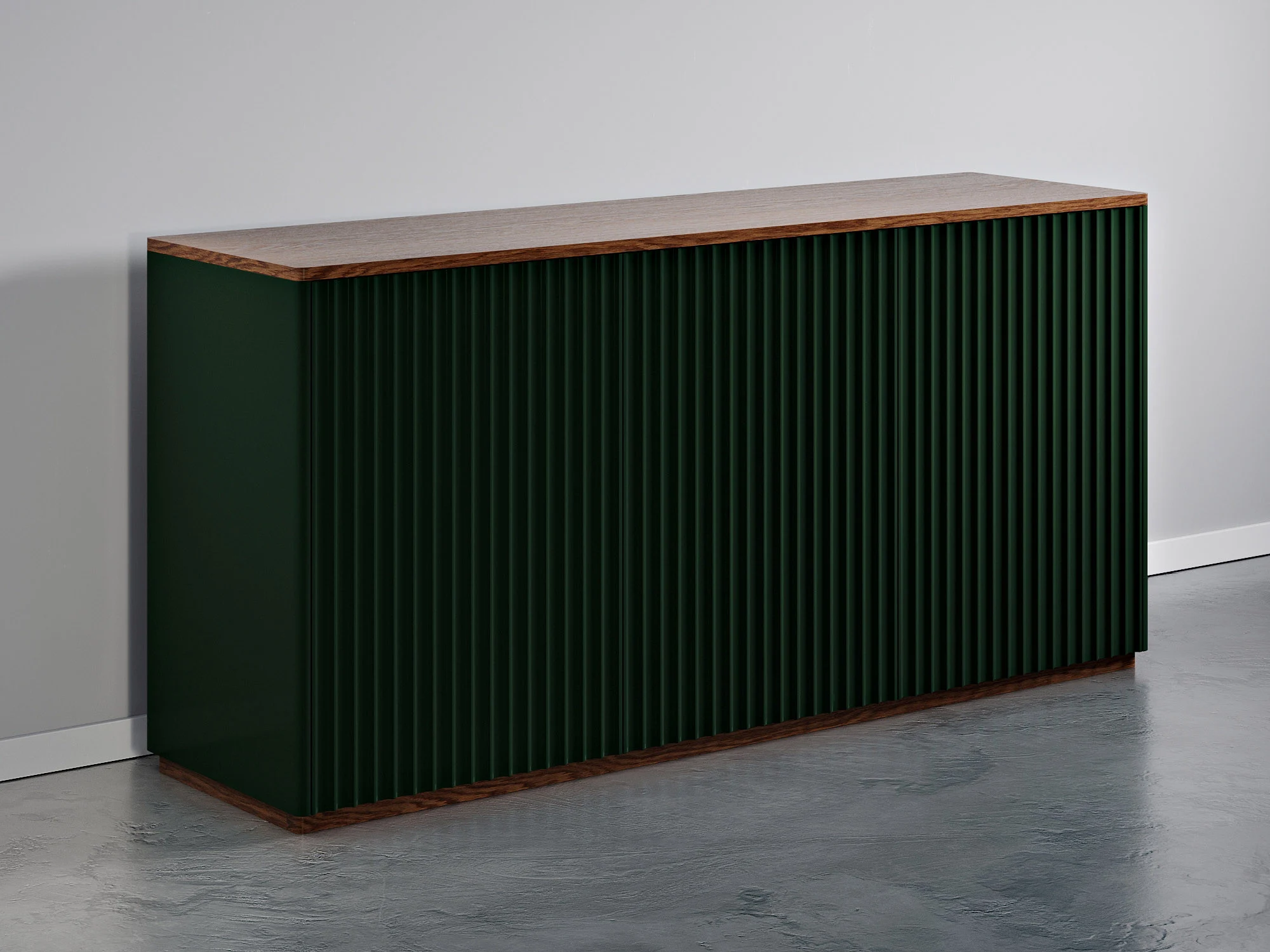 Располагающий и уютный дизайн комода VR15 обеспечивается декоративно скругленными деталями каркаса, а элегантность придает глубокая фрезеровка и строгие линии на фасадах. Дверцы вместительного комода из трех секций открываются легким нажатием, ход петель мягкий и бесшумный. Полки регулируются по высоте. Используйте комод отдельно или вместе с другими моделями из коллекции.