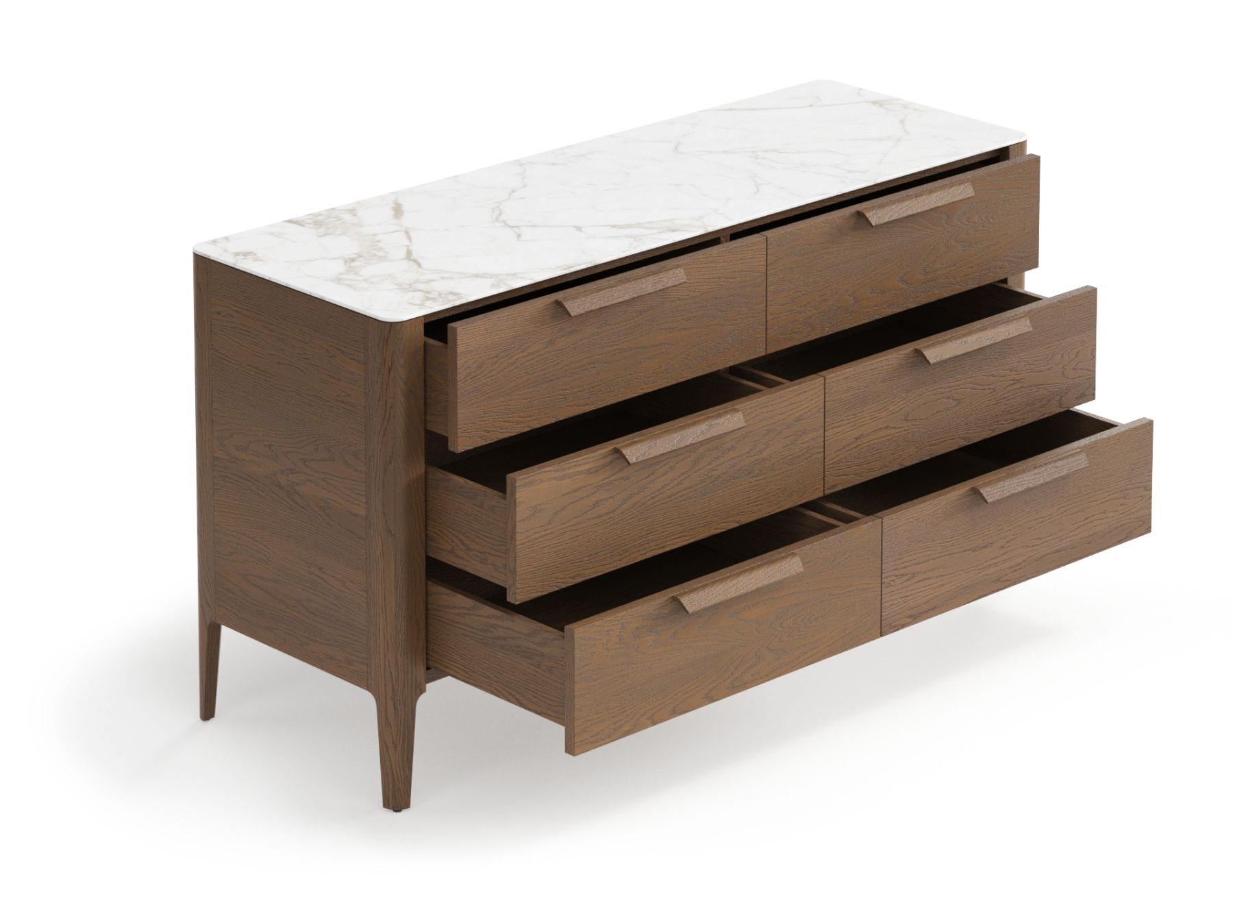 Комод с использованием массива будет гармонично вписываться в интерьер вашего дома, делая его стильным, современным и функциональным пространством. Вместительное изделие с шестью ящиками позволит разделить вещи на несколько групп.