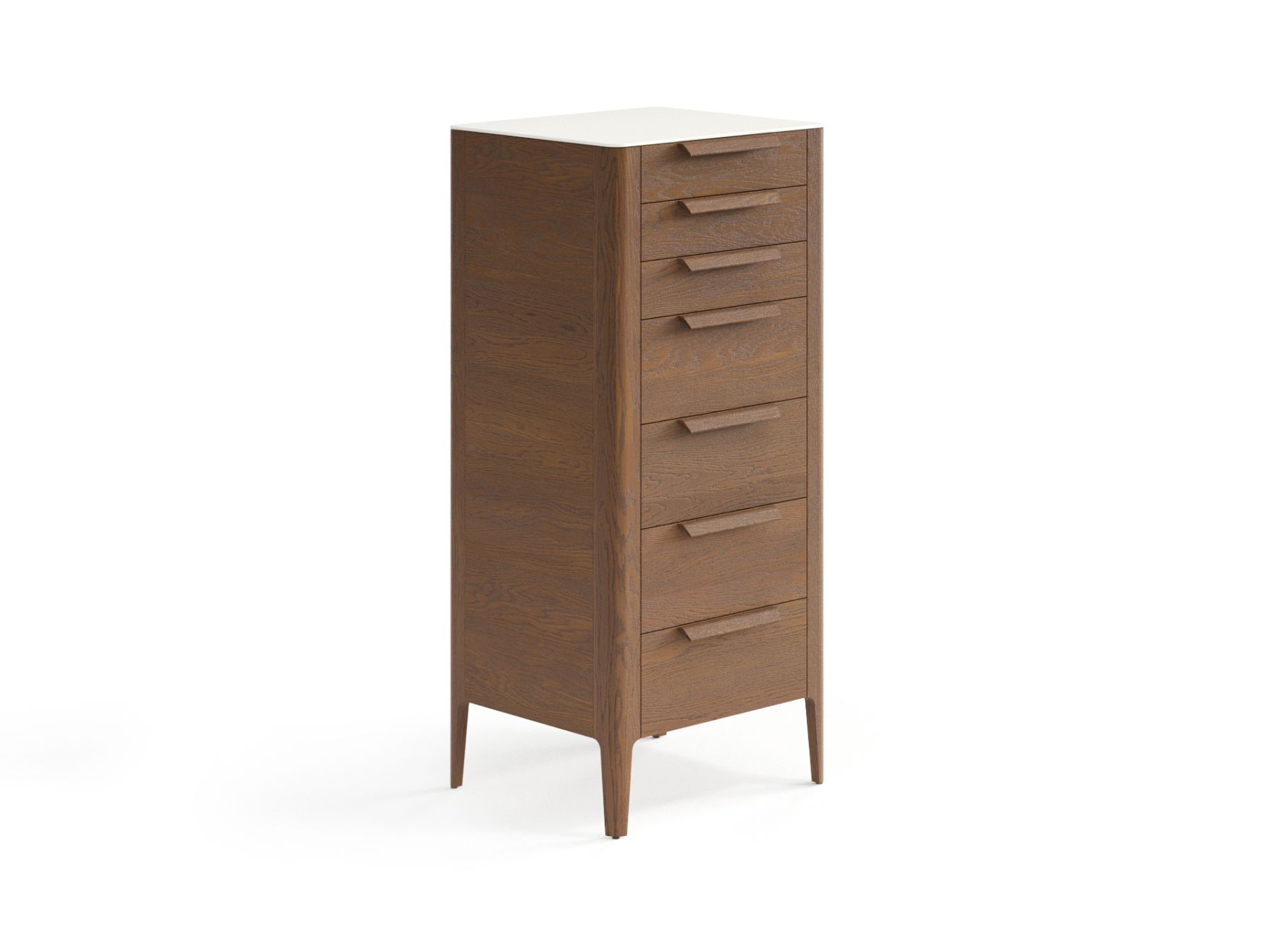 Высокий комод с семью ящиками украсит пространство и станет удобной системой хранения. Идеально впишется как в спальню или гостиную, так и в прихожую, не занимая много места в пространстве.