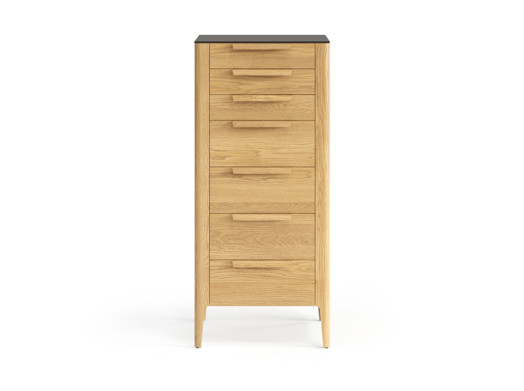 Высокий комод с семью ящиками украсит пространство и станет удобной системой хранения. Идеально впишется как в спальню или гостиную, так и в прихожую, не занимая много места в пространстве.
