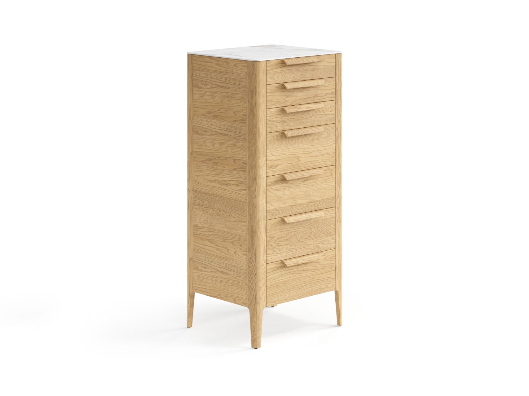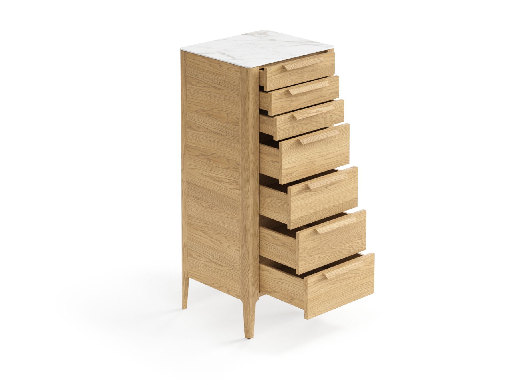 Высокий комод с семью ящиками украсит пространство и станет удобной системой хранения. Идеально впишется как в спальню или гостиную, так и в прихожую, не занимая много места в пространстве.