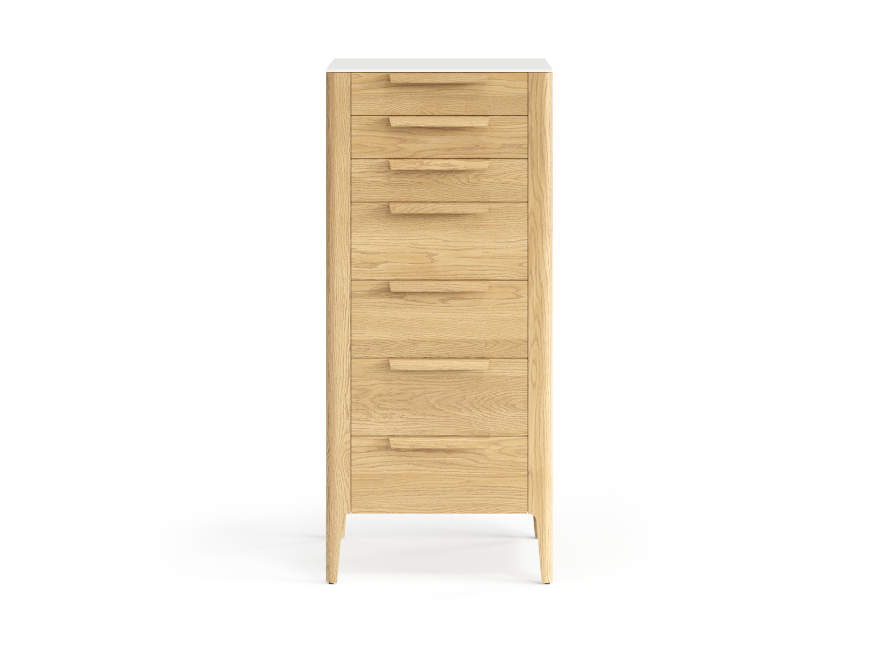 Высокий комод с семью ящиками украсит пространство и станет удобной системой хранения. Идеально впишется как в спальню или гостиную, так и в прихожую, не занимая много места в пространстве.