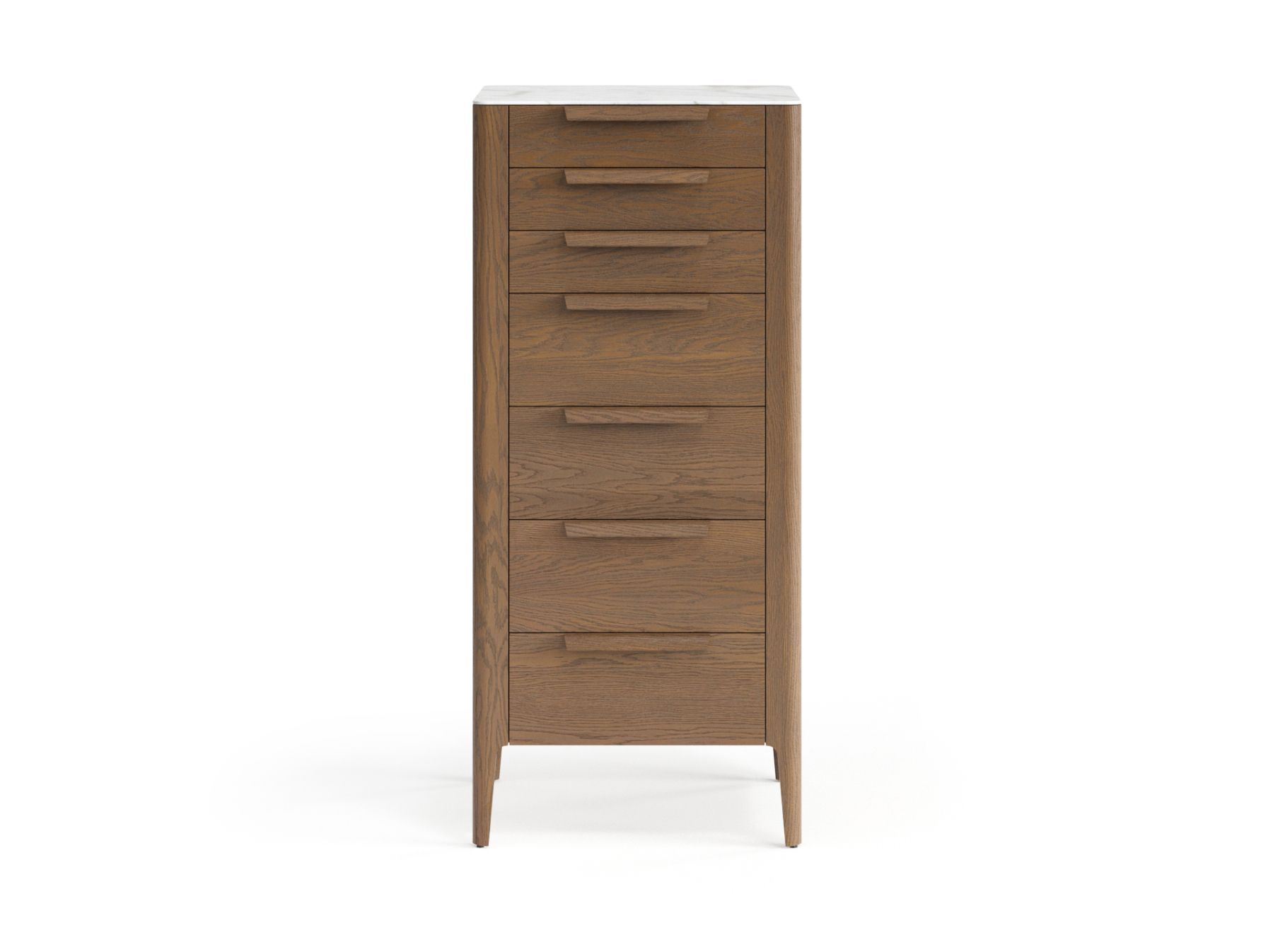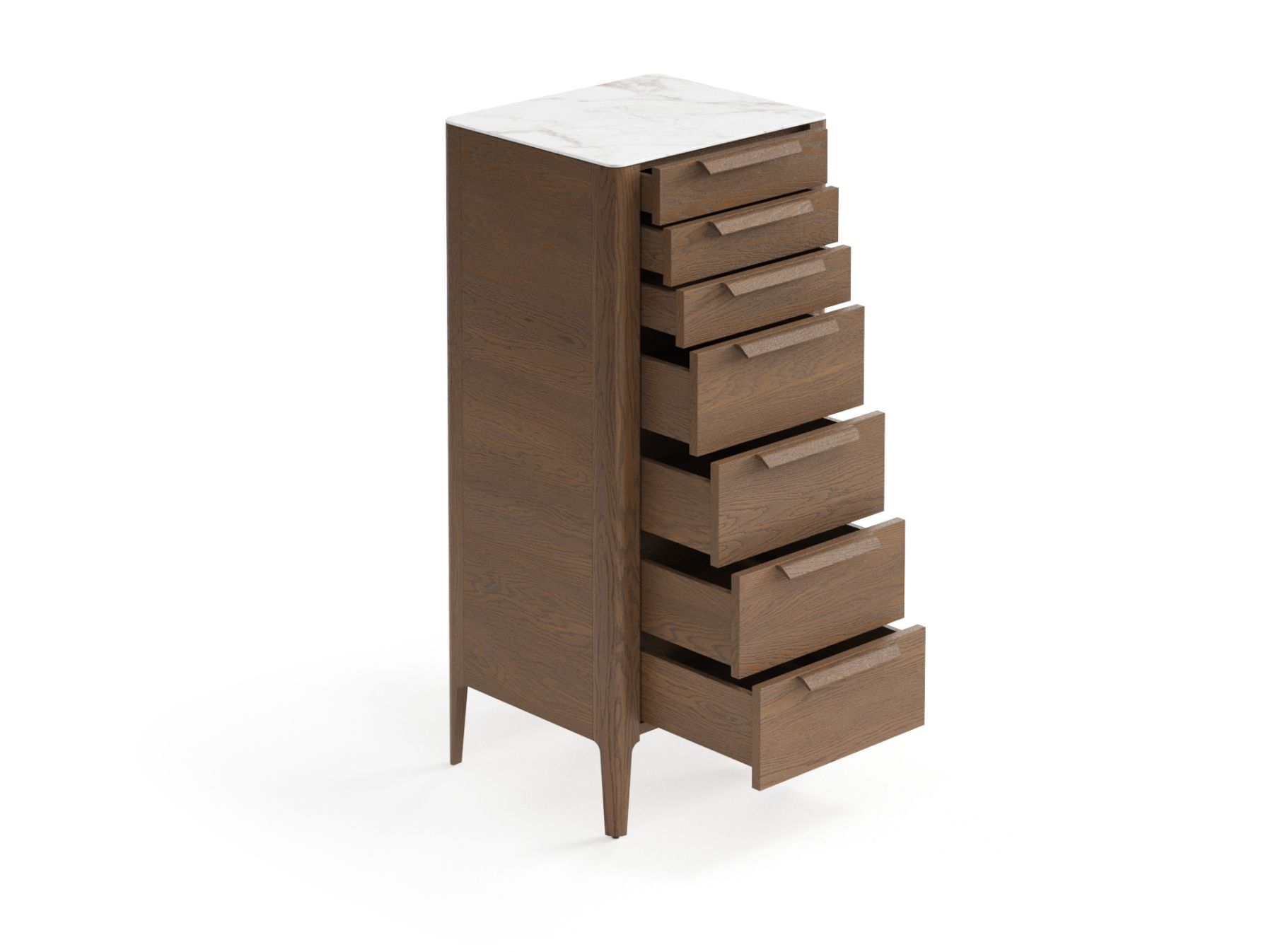 Высокий комод с семью ящиками украсит пространство и станет удобной системой хранения. Идеально впишется как в спальню или гостиную, так и в прихожую, не занимая много места в пространстве.