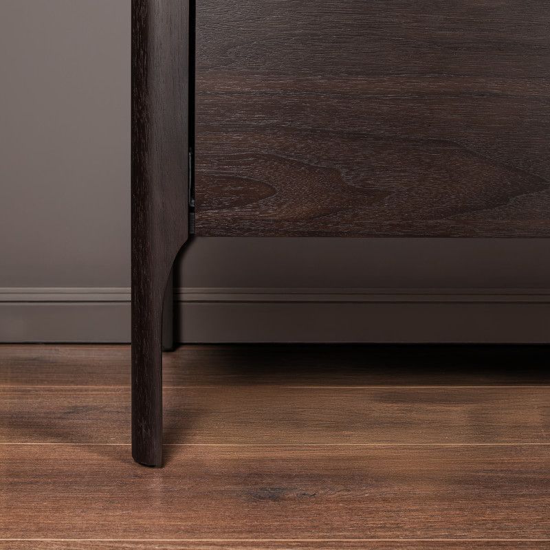 Корпус и фасады комода изготовлены из высококачественного МДФ высокой плотности, Ножки и ручки - из массива дерева.
