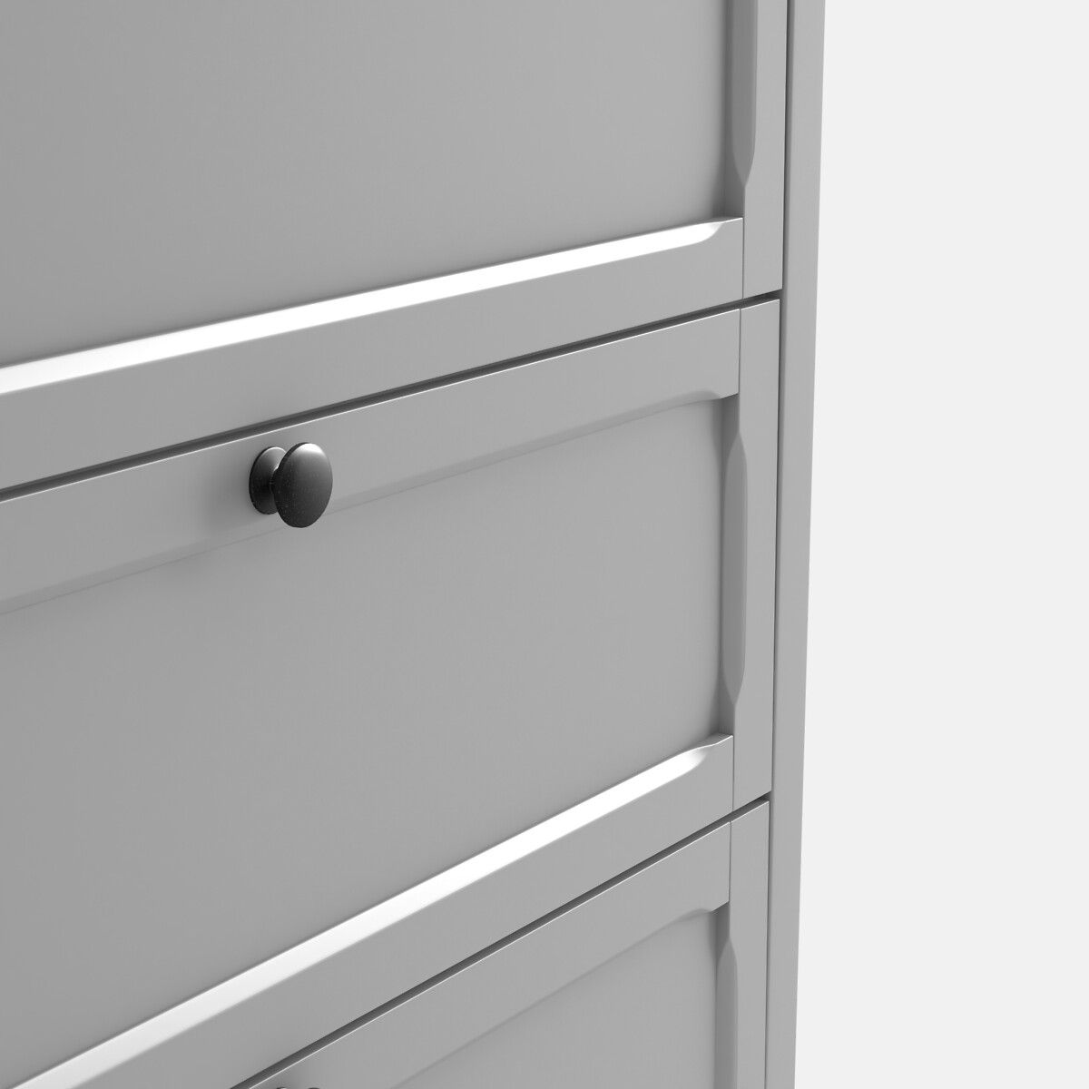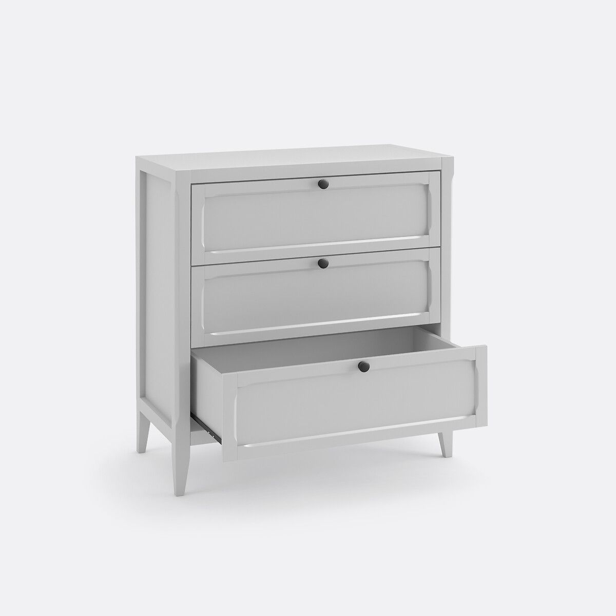 Комод с 3 ящиками, Eugénie Esprit Коллекция мебели для хранения вещей, сочетающая строгость линий и оригинальность резной работы, светло-серого цвета или под дуб.
