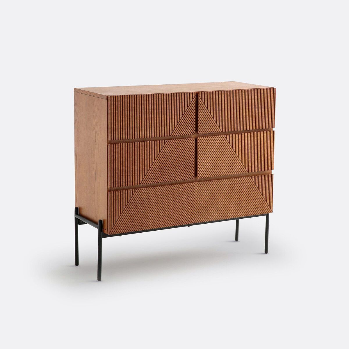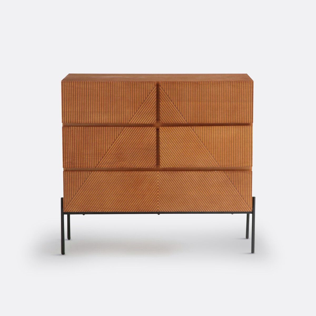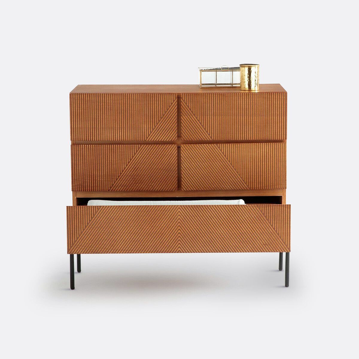 — 5 выдвижных ящиков: 4 маленьких + 1 большой снизу, фасады с желобками